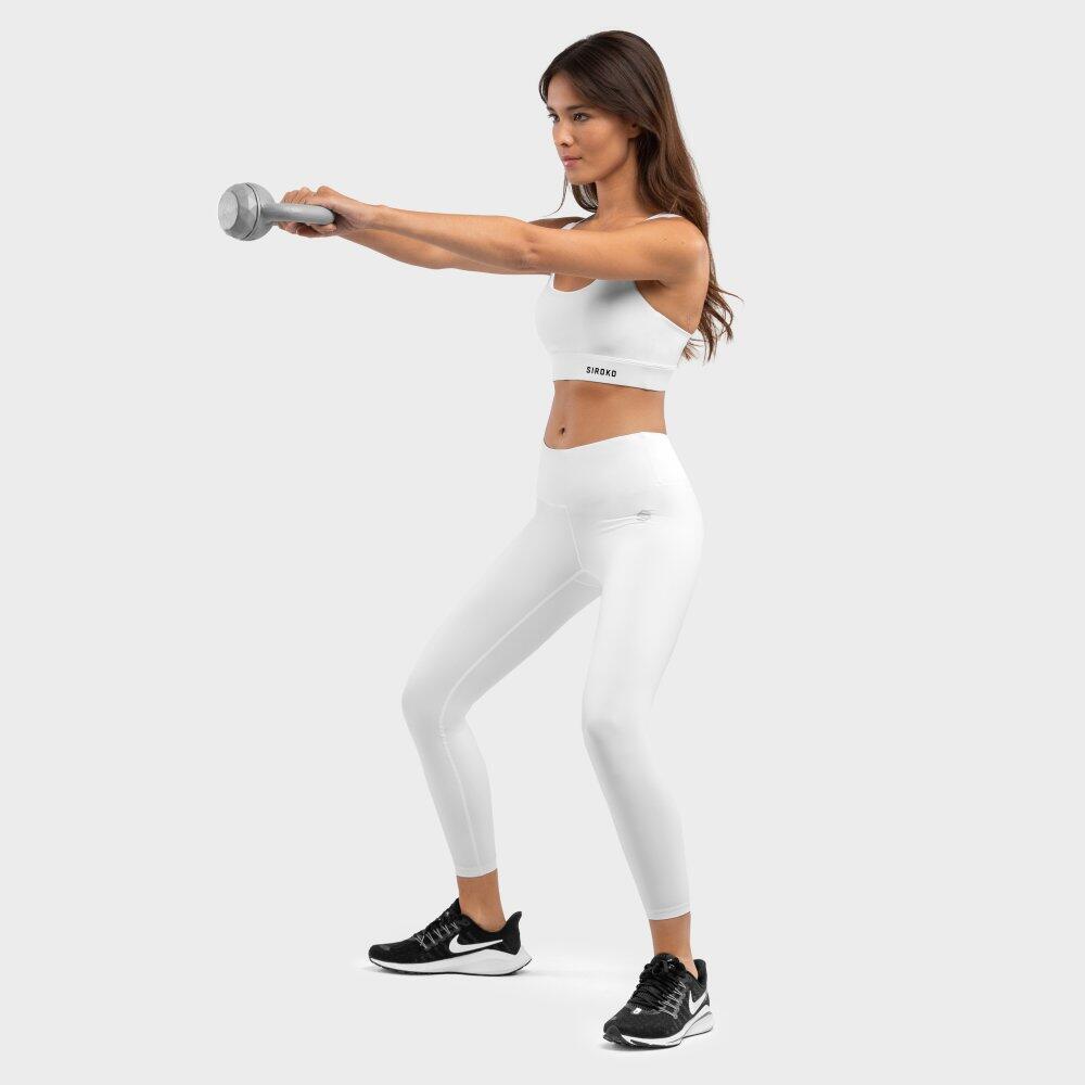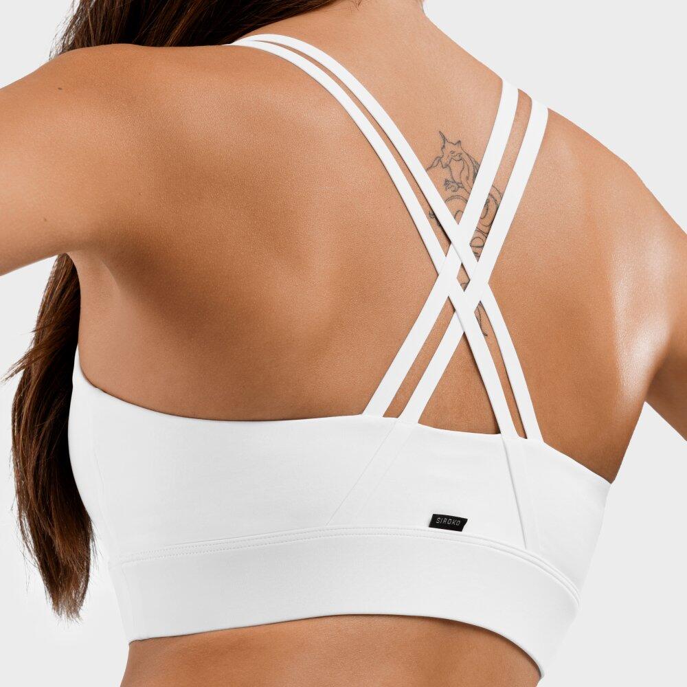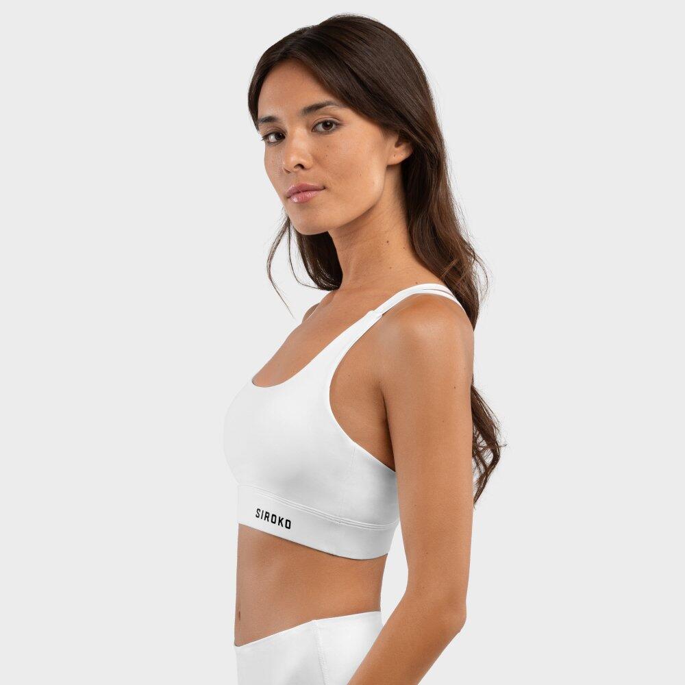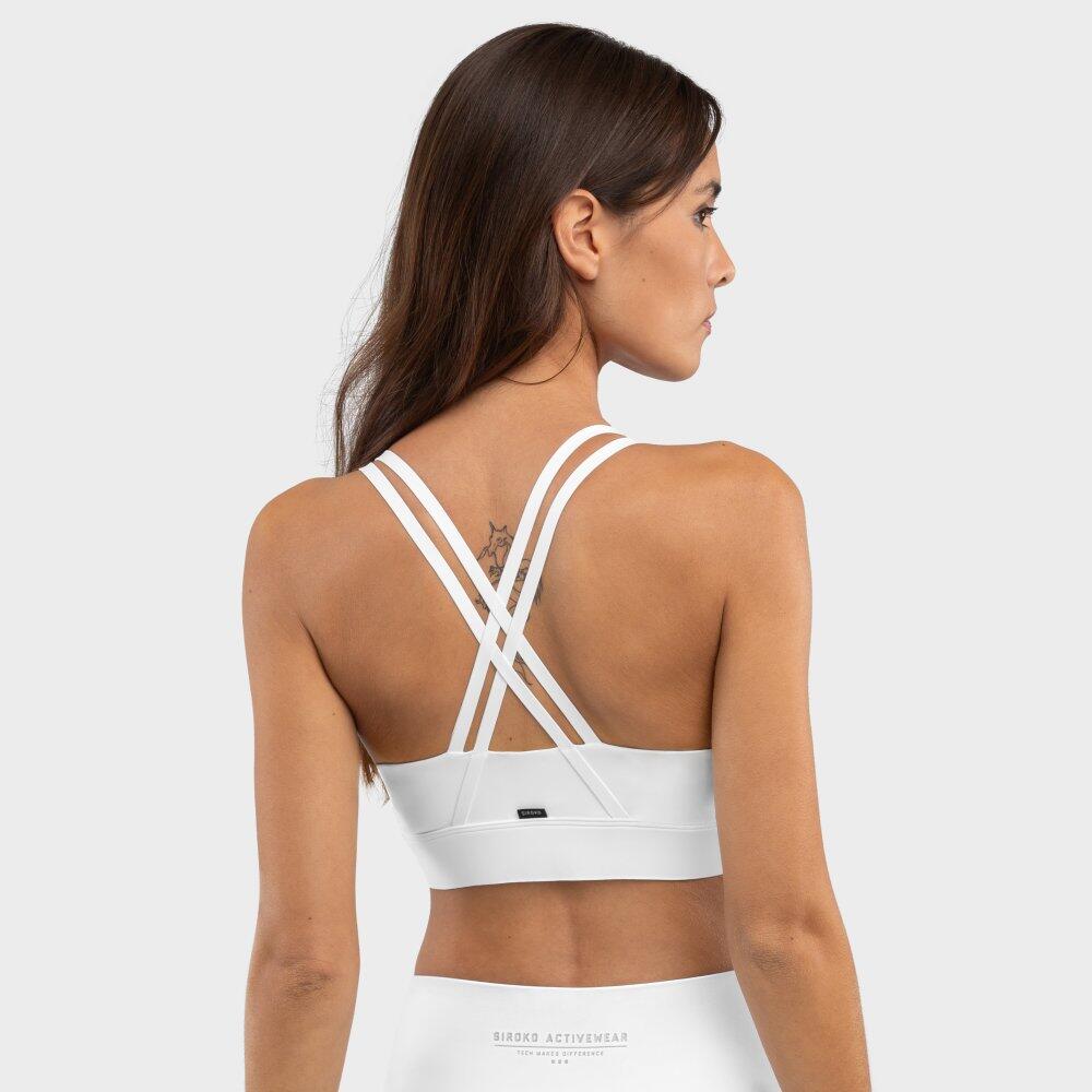 Balance White sports bra with sportive cut and optimal breathability, perfect for medium-impact gym and fitness workouts