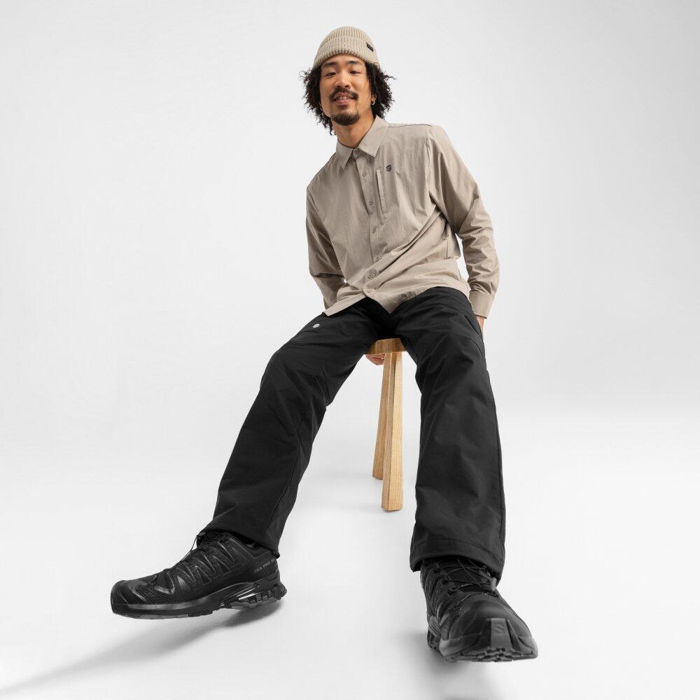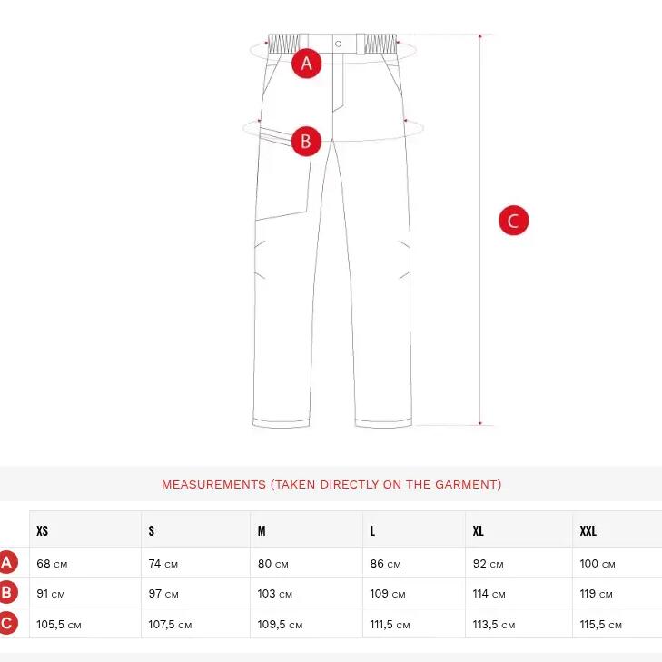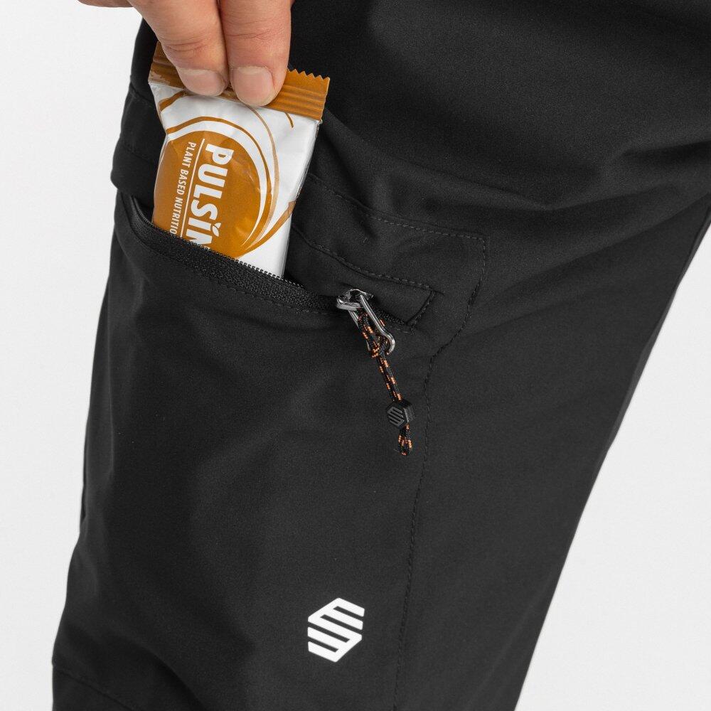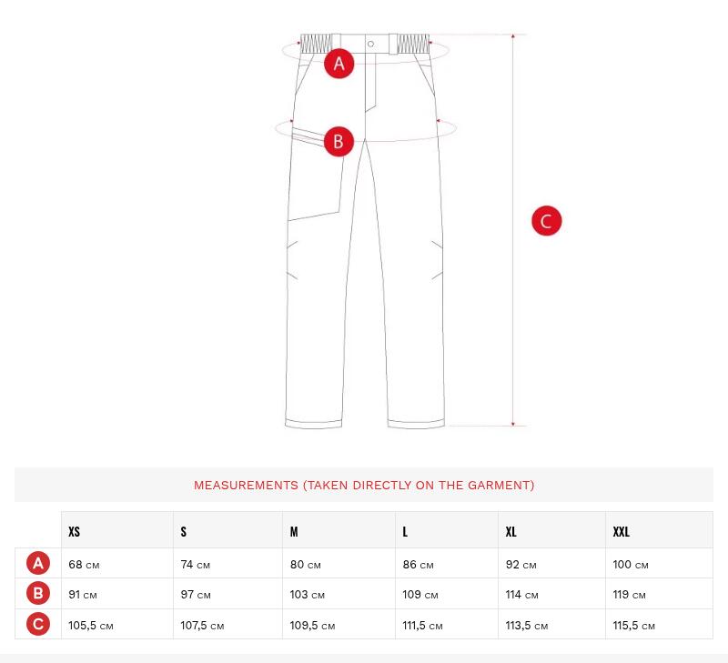 Long pants made of water repellent fabric with 20k breathability. Articulated knees, elastic waist and adjustable bottom hems for maximum comfort during all outdoor activities.