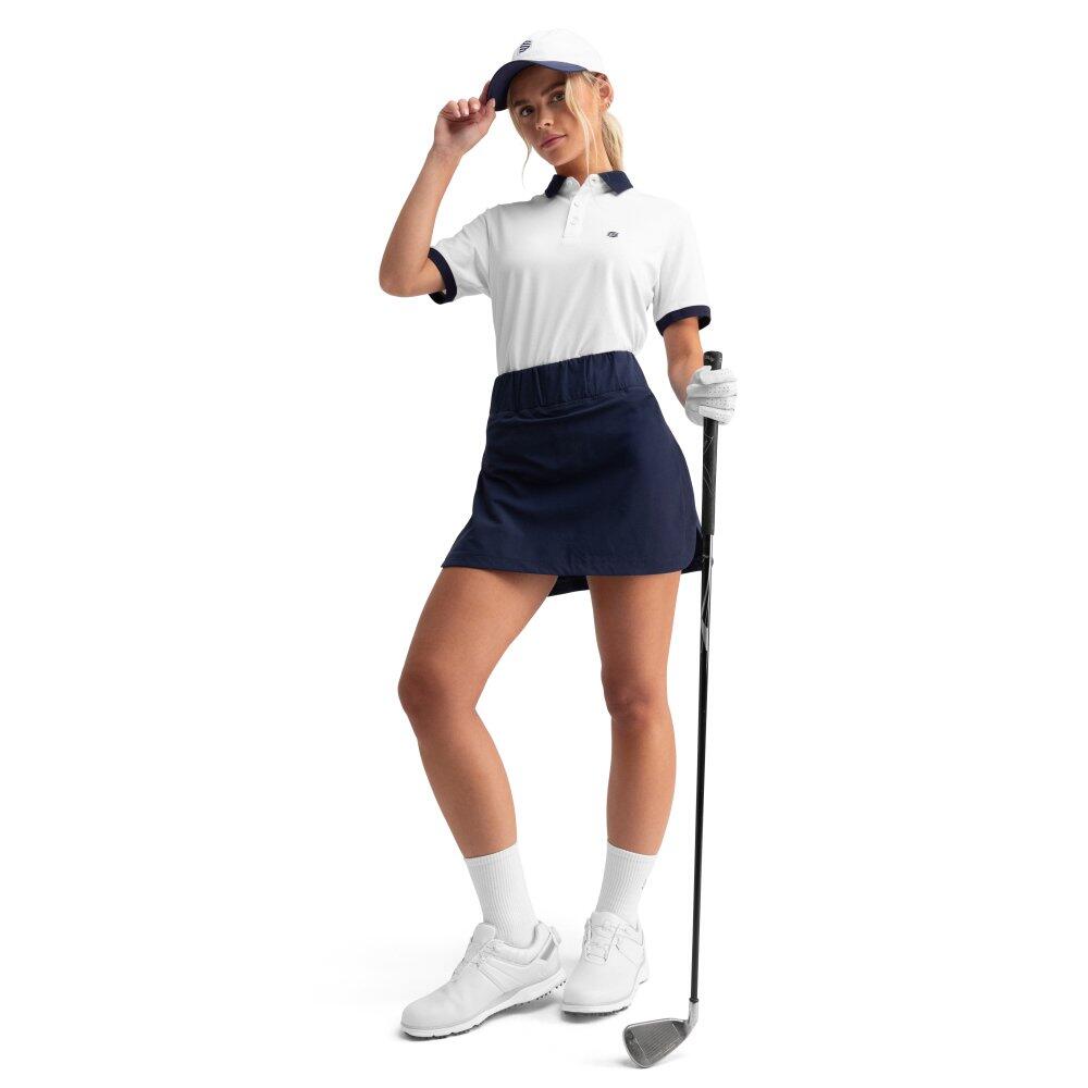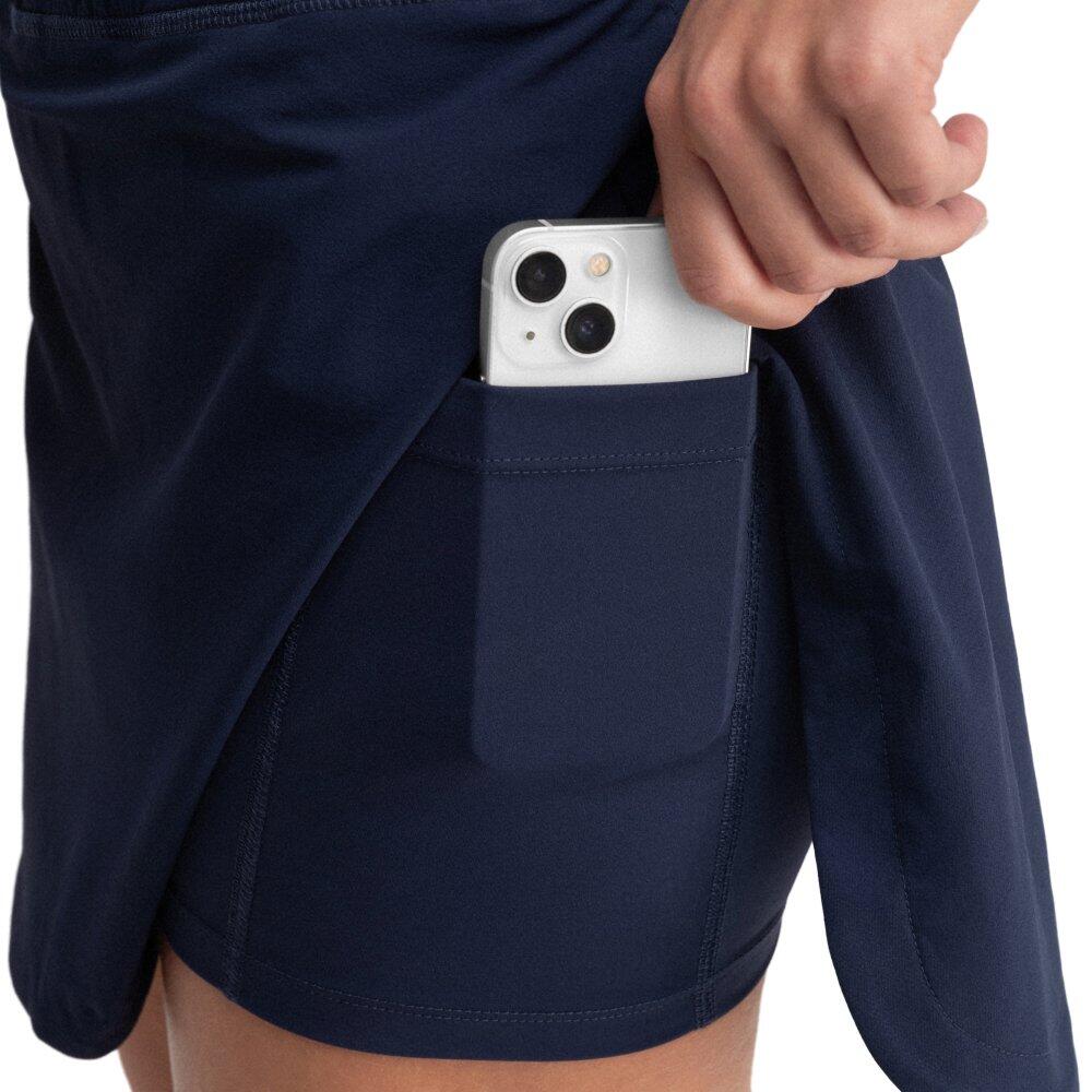 Stretchy, ultralightweight performance fabric to practice your favorite sport. Designated tee holder in the skirt, multipurpose inner pocket in the shortie. Split bottom hem for extra comfort and ease