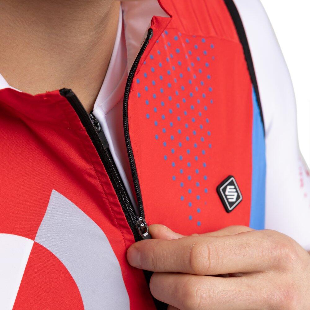 SC V1 Estadio ultralightweight, elastic and breathable cycling vest. One rear pocket and semi-automatic main zipper. Compact and portable, easy to carry and store when not in use. Official Real Sporti