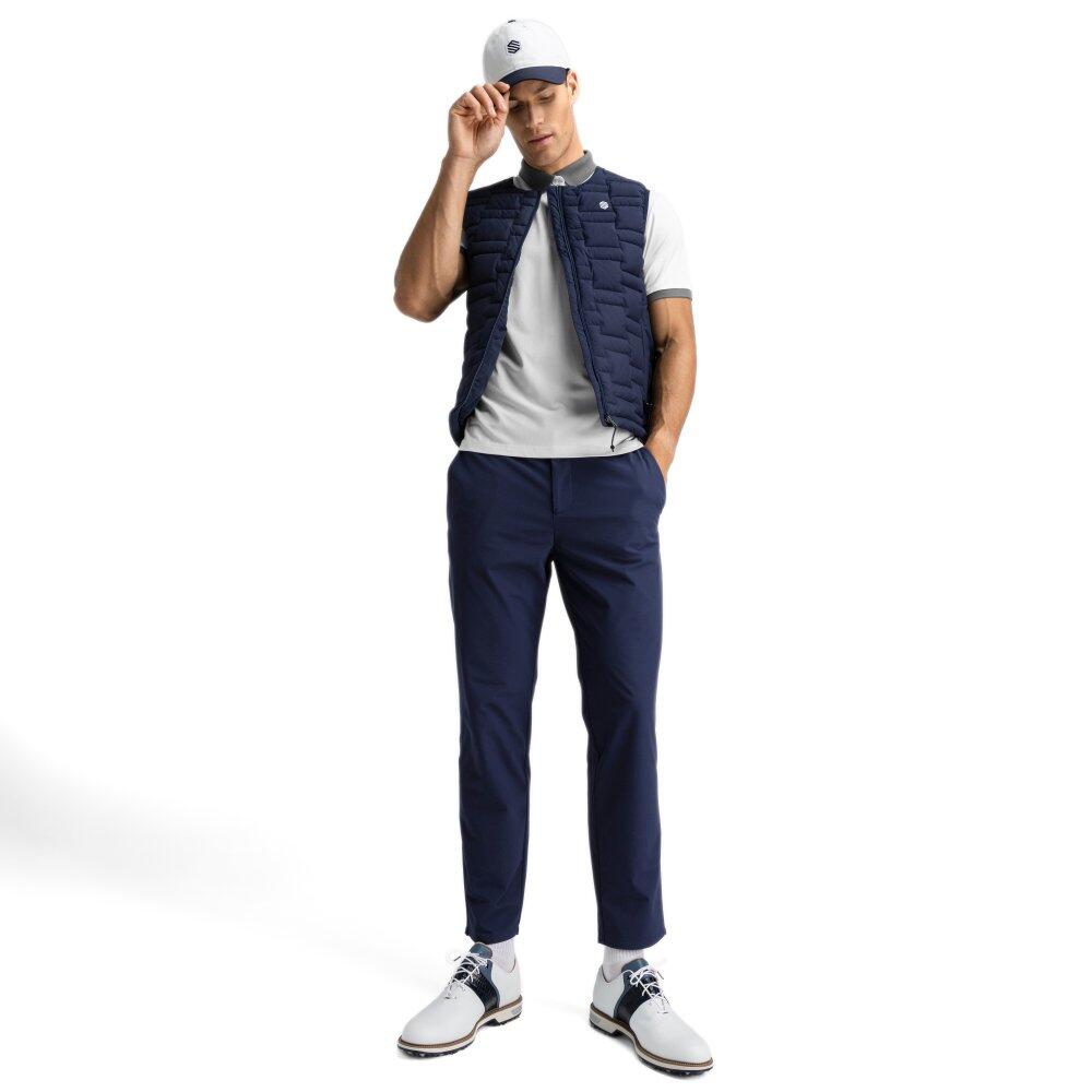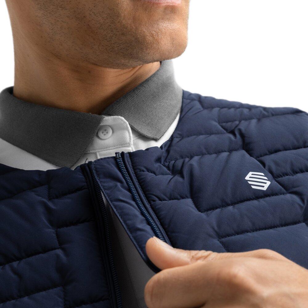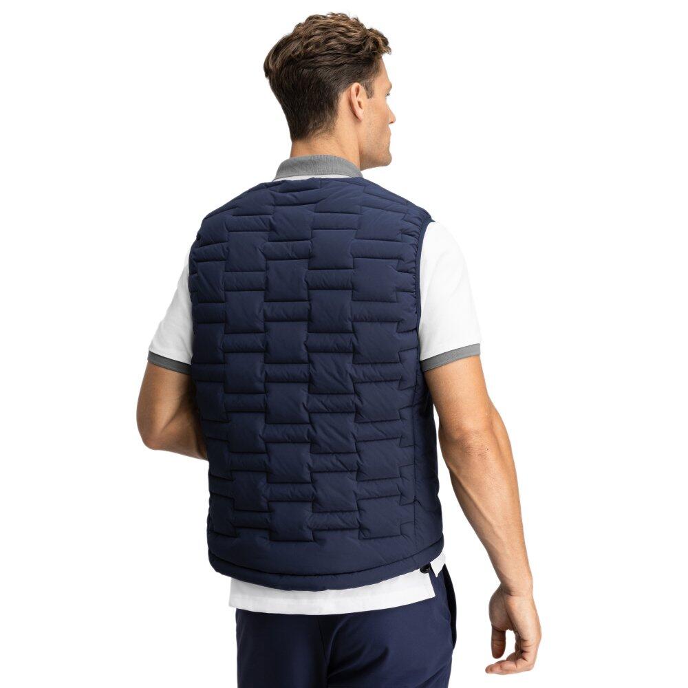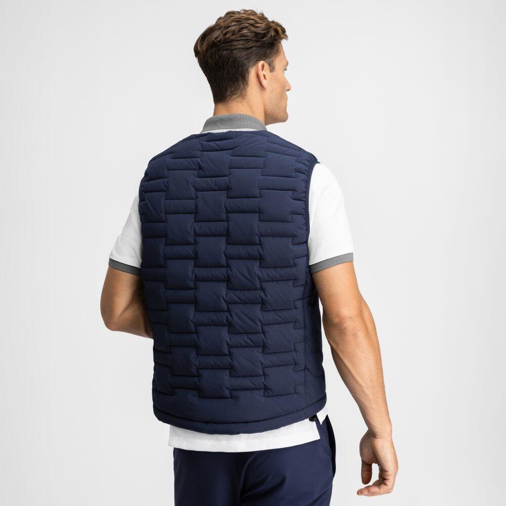 Insulating men's golf gilet with Sorona® Aura, UPF 50+, regular fit, adjustable drawcord at the waist and two zip pockets for optimal comfort and protection.