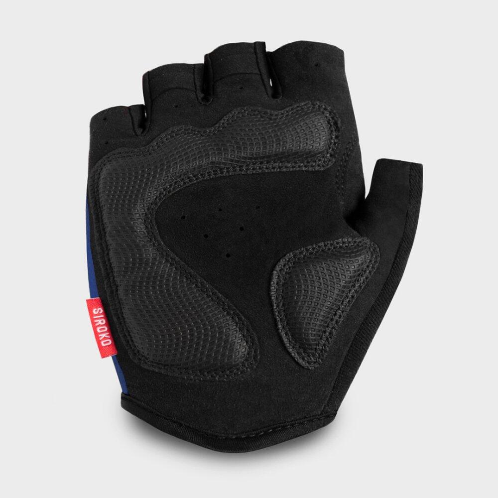 Siroko Aero Dark Blue cycling mitts with palm padding, breathable fabric, and adjustable wrist closure for optimal comfort