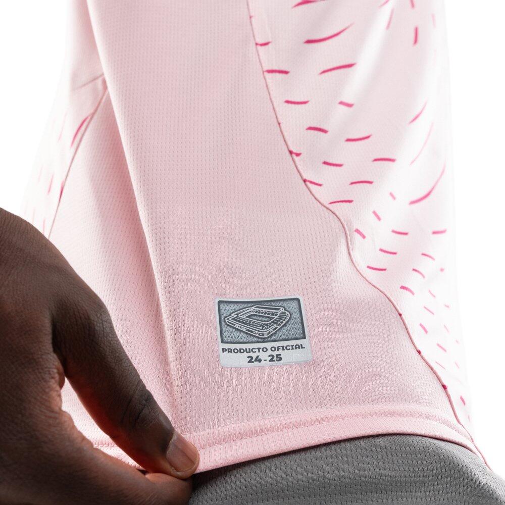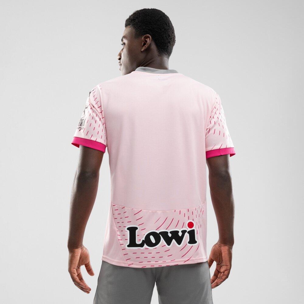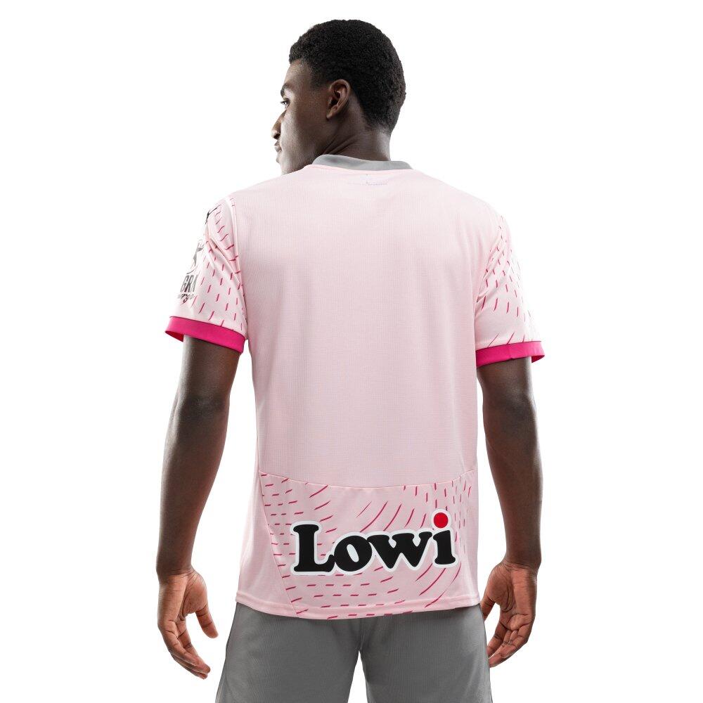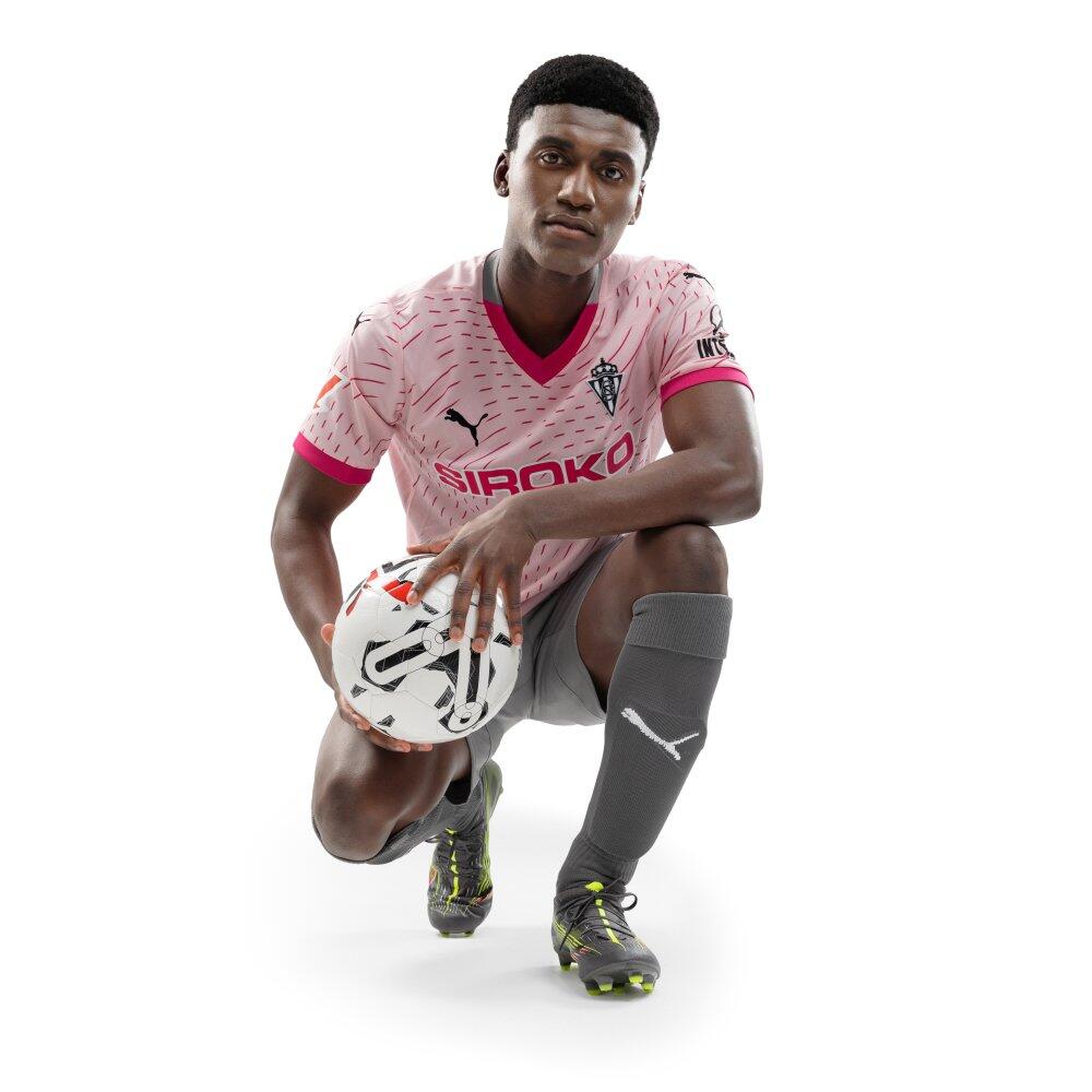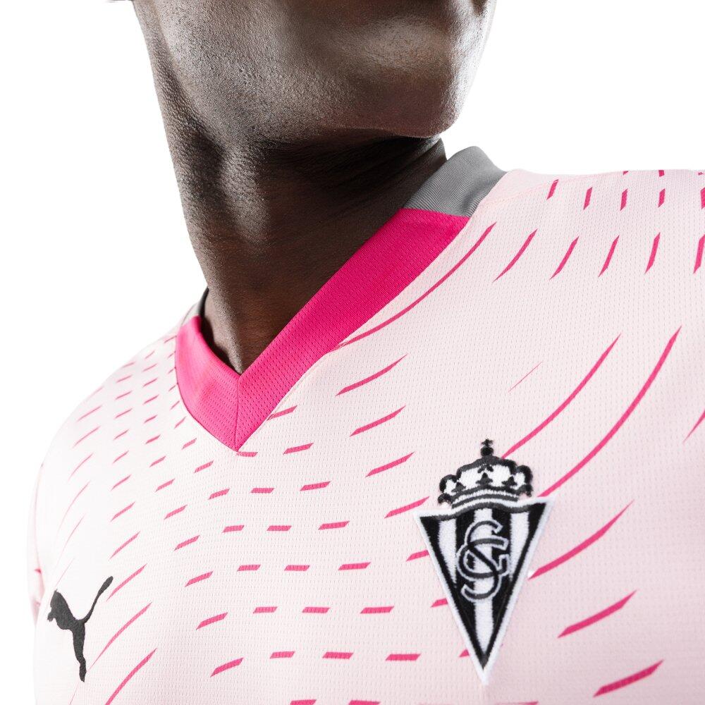 Puma football shirt for adults from the official Real Sporting de Gijón third kit for the 2024/2025 season. Modern design in pink. Comfortable and breathable, with silver-toned club crest and V-neck.