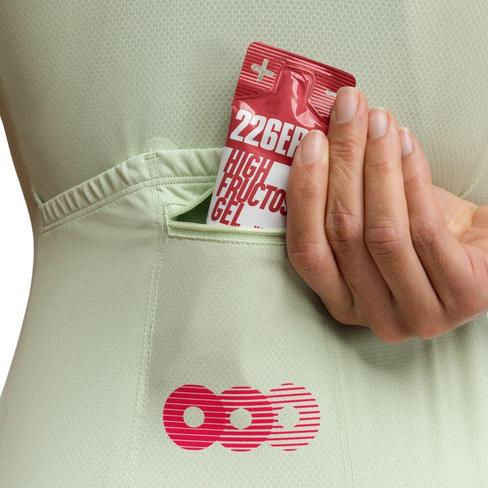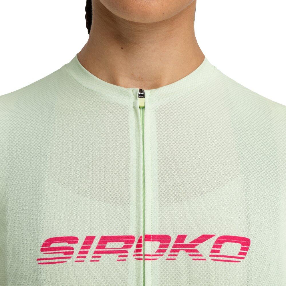 Cycling jersey designed for hot summer weather. Ultralightweight, elastic, highly breathable and quick-drying mesh fabric. Short sleeves, three rear pockets and semi-automatic zipper.