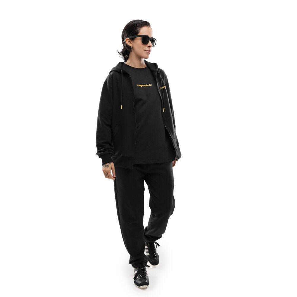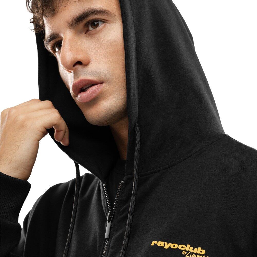Hooded sweatshirt with a full zipper. Soft, light and elastic scuba fabric. Kangaroo pockets, ribbed cuffs and bottom hem. Loose fit for maximum comfort. Official Rayo Club x Siroko collab.