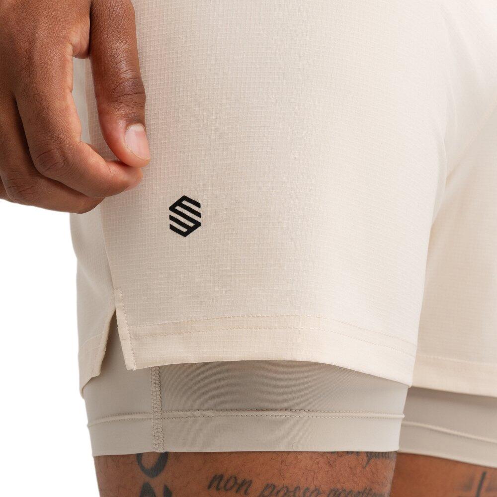 Men Hiking 's 2-in-1 trail running shorts Overland Stone Beige
