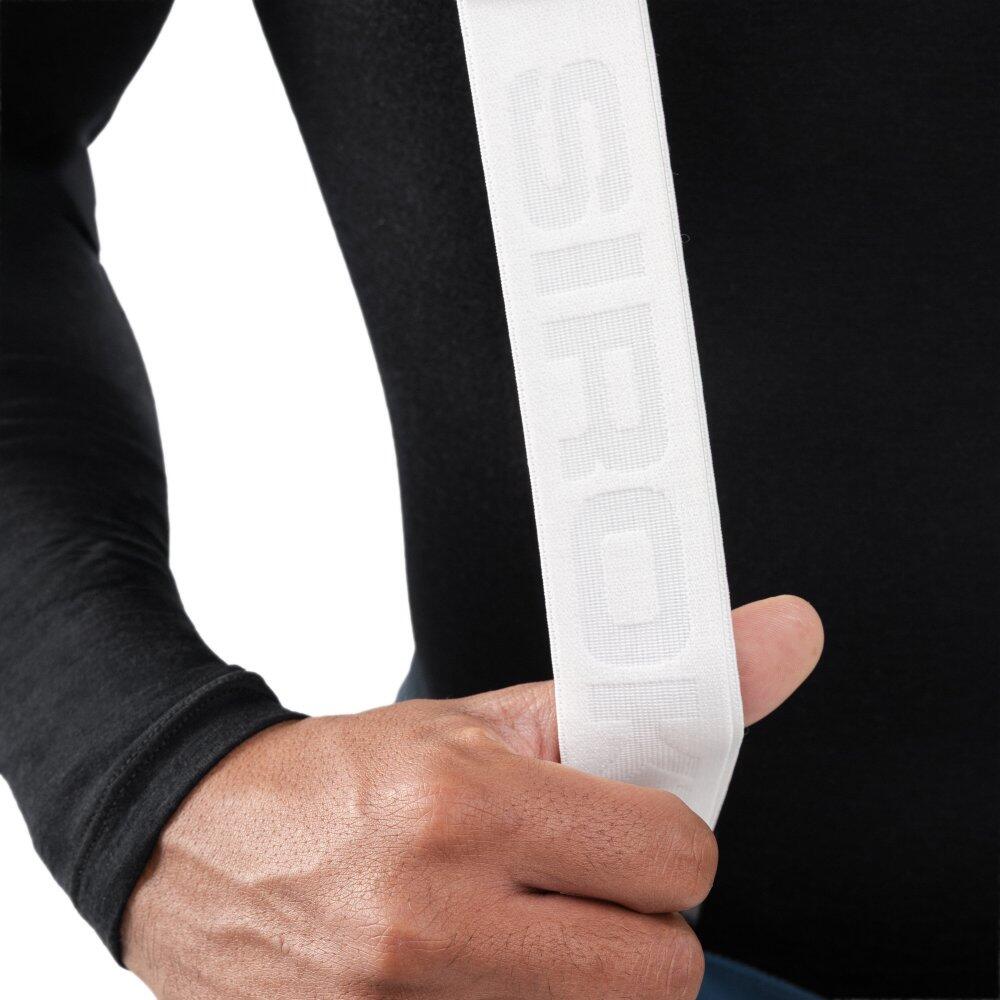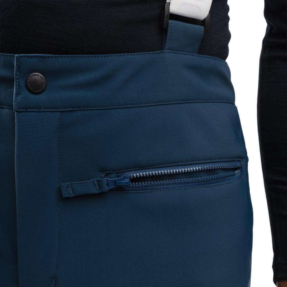 Vintage style ski pants with suspenders made of 15K waterproof and breathable fabric. Sealed seams, waterproof snow gaiters, articulated knees, and two practical pockets.