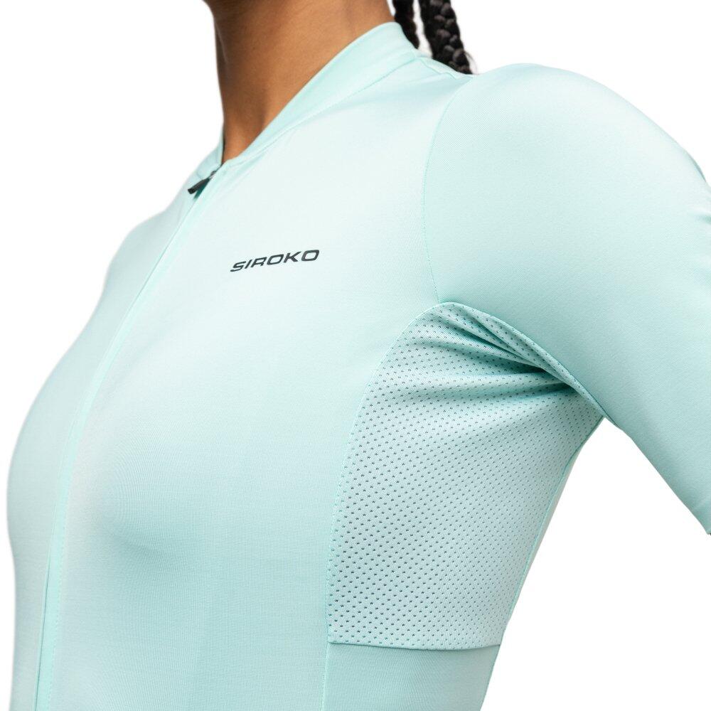 Women Cycling 's short sleeve jersey in recycled fabrics M6R Fresh Turquoise