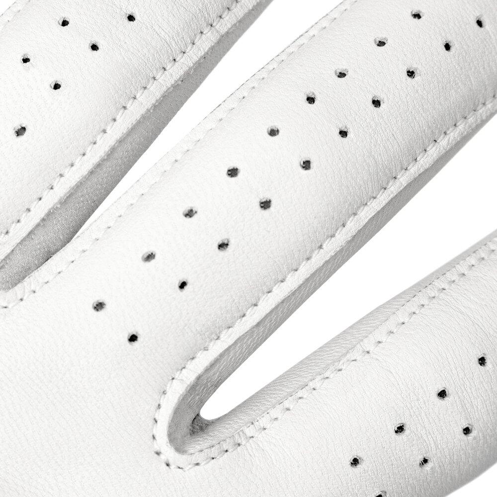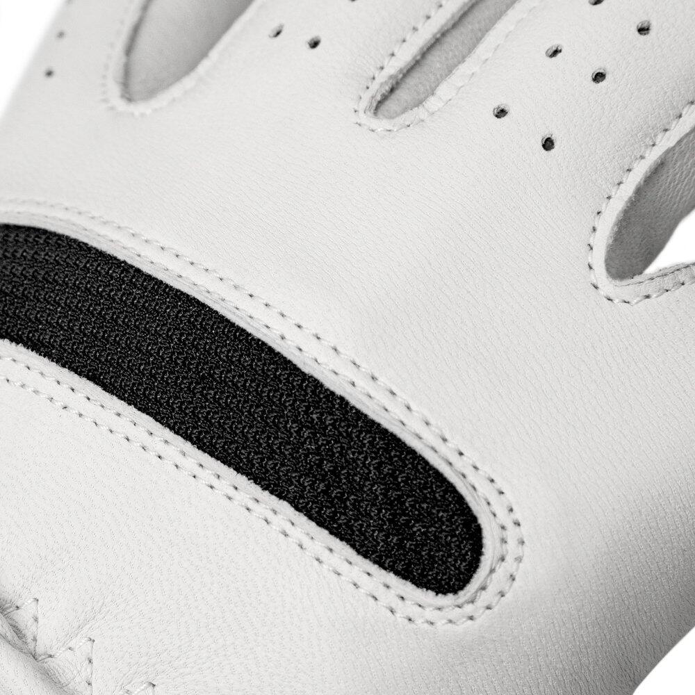 Available for right- and left-handed golfers. Made of cabretta leather, with Velcro closure, microperforations and elastic mesh panel in the knuckle area for maximum comfort, breathability and fit.