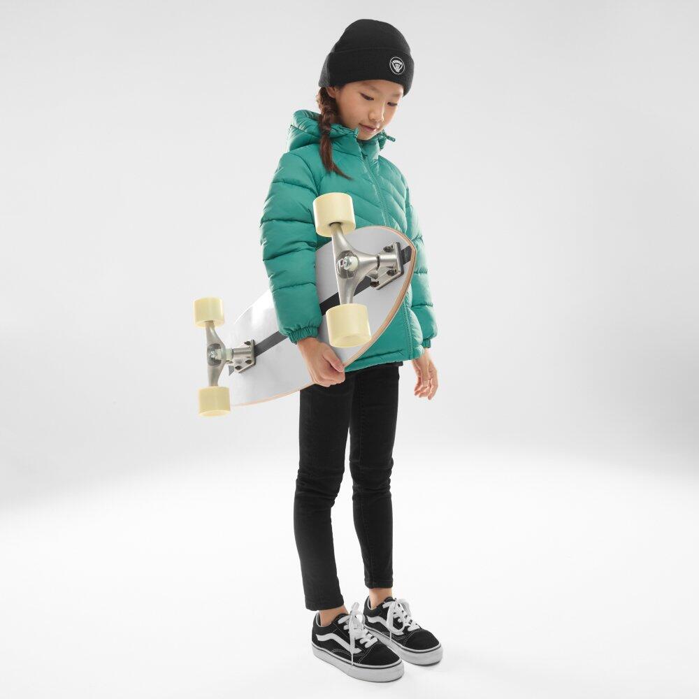 Lightweight girls' puffer jacket with responsibly made Sorona® Aura 180 g/m² insulation, adjustable hood, ultra-soft fabric and two zip pockets for thermal comfort and wind protection.