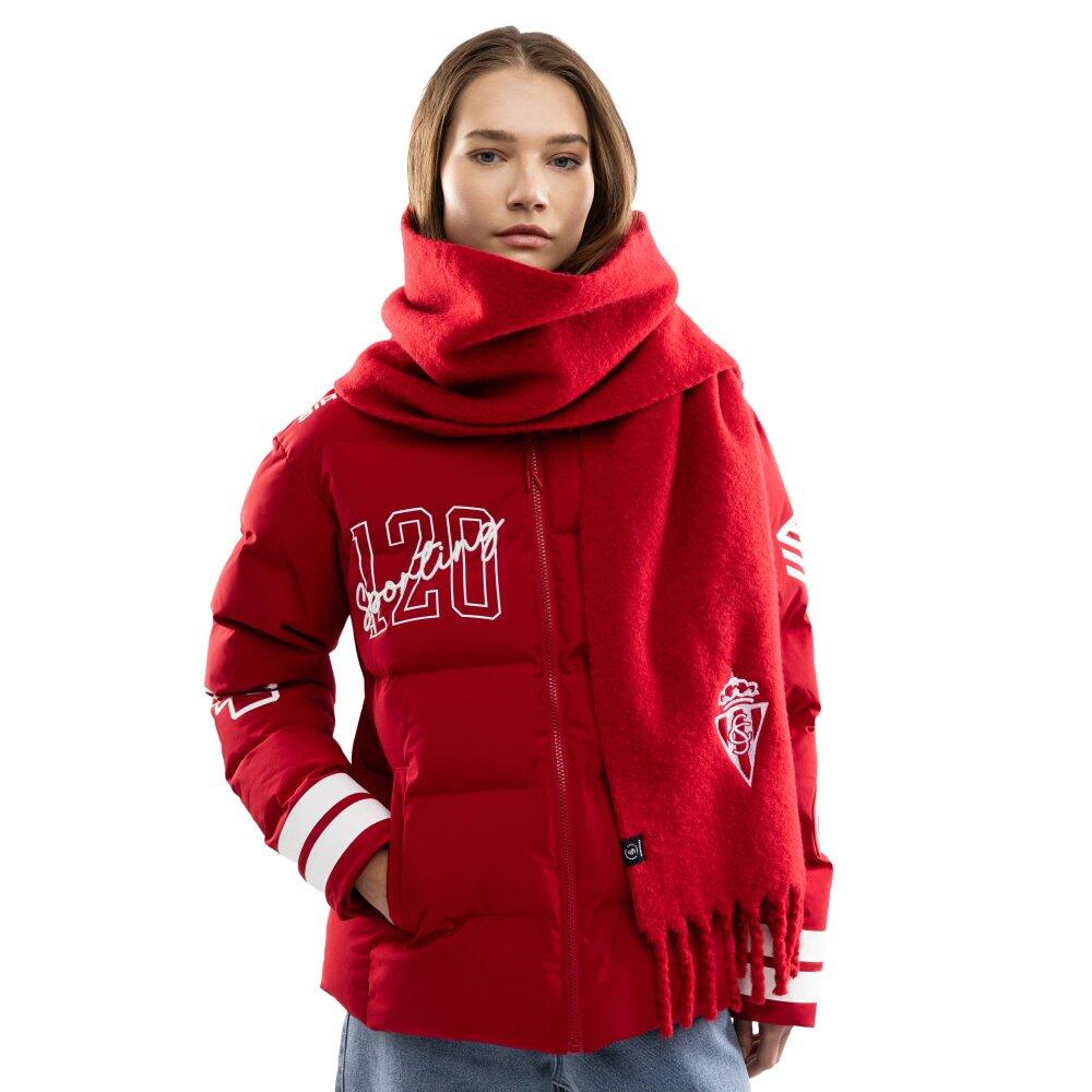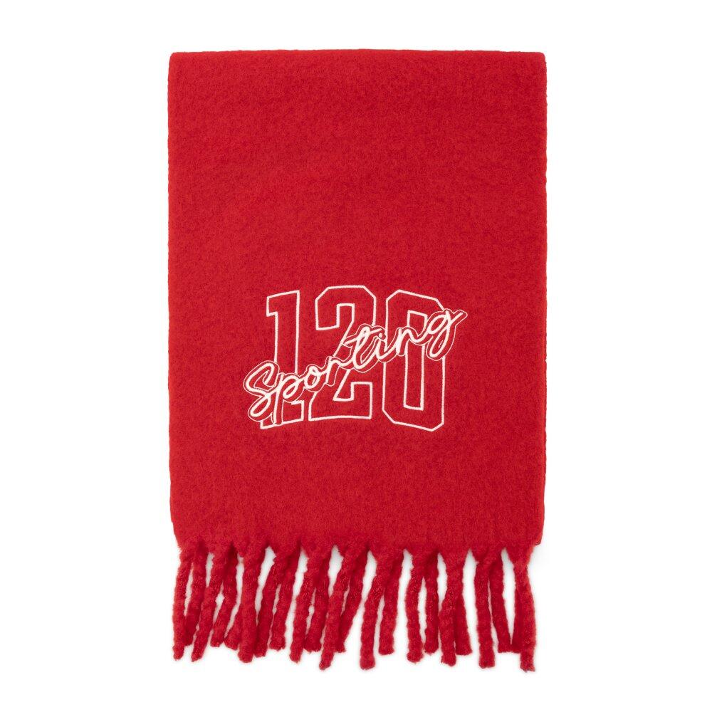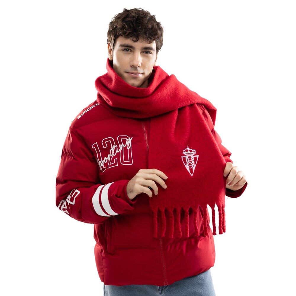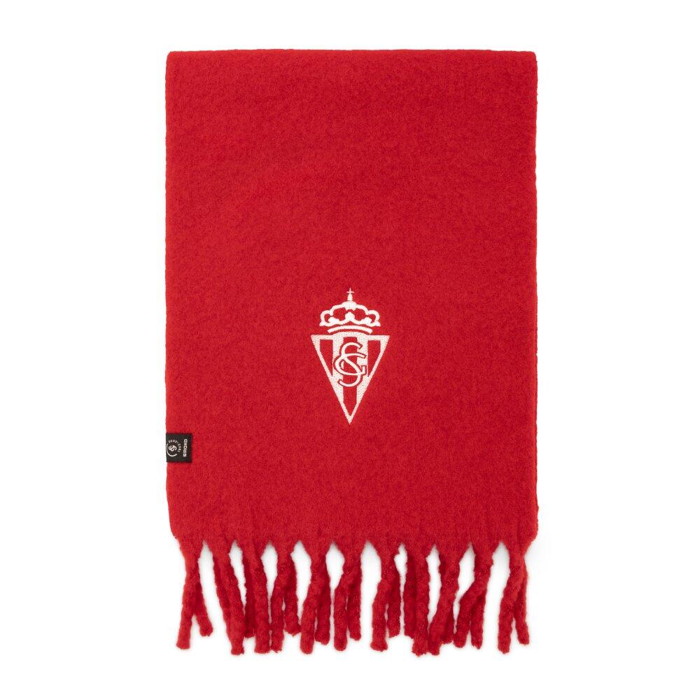 Special edition fringe winter scarf for 120th anniversary of Real Sporting de Gijón. Soft, cozy fabric with embroidered club crest and fringed ends. Size: 170 x 30 cm.