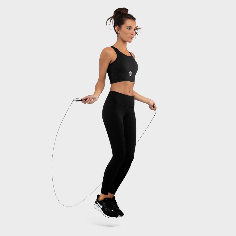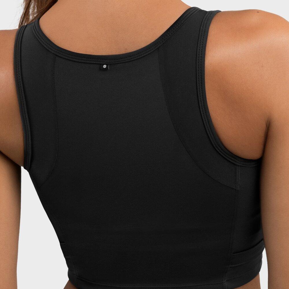 The Crunch Black sports bra is made of soft, high-quality fabric with a sportive cut and wide shoulder straps for optimal support during medium-impact workouts Includes removable pads