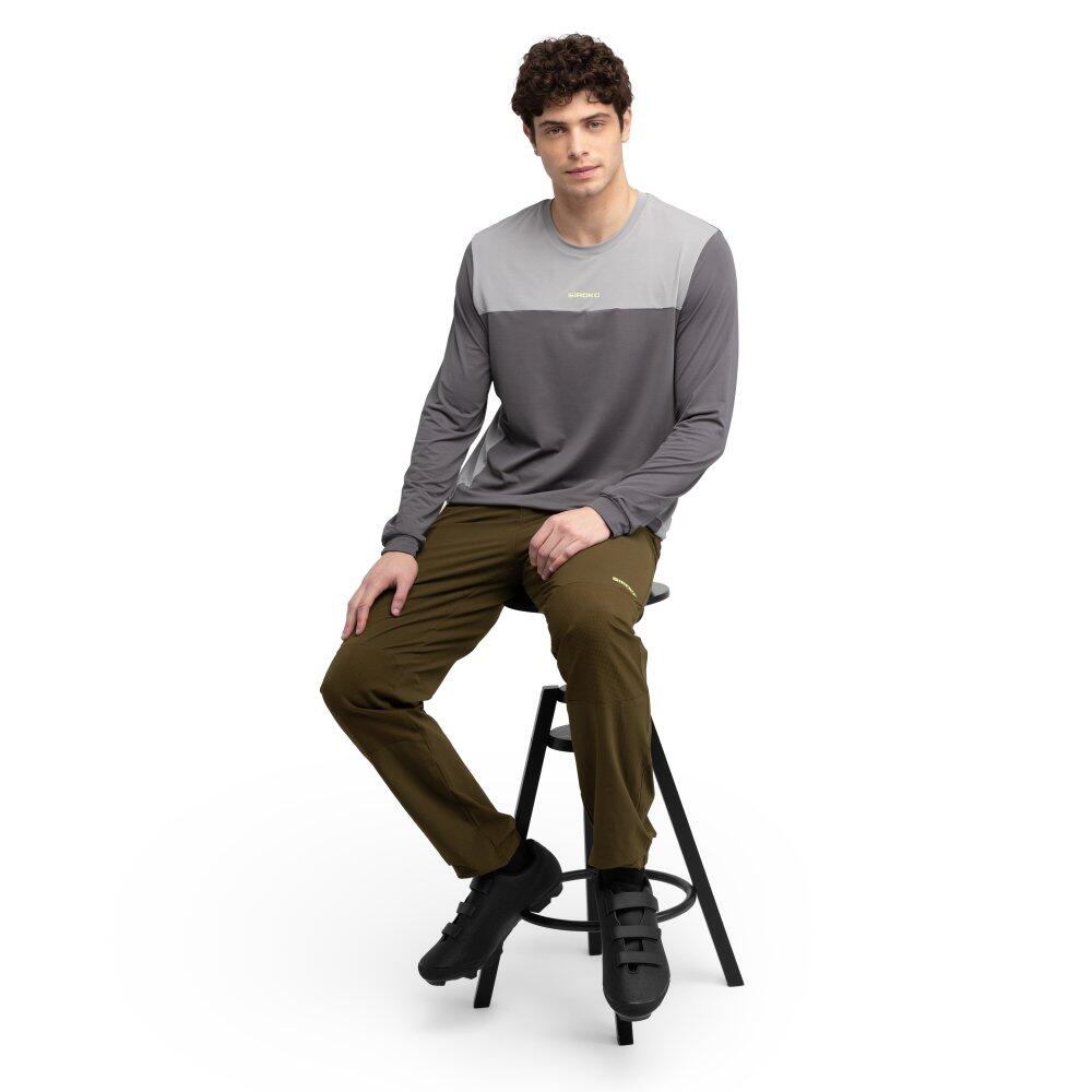 Cycling long trousers without a built-in chamois designed for mountain biking. Resistant, elastic and breathable fabric with water-repellent coating. 2 pockets and race-ratchet closure.