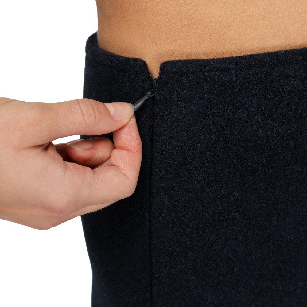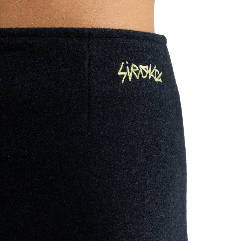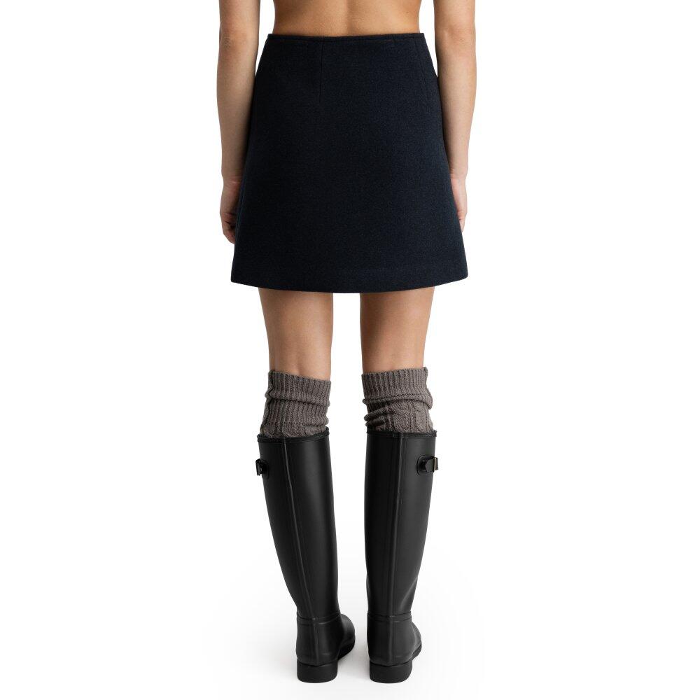 Wool-blend mini skirt with straight silhouette, high waist, and invisible side zip fastening. Finished with a subtle embroidered logo for a refined touch. Perfect to pair with shirts, knits, or boots