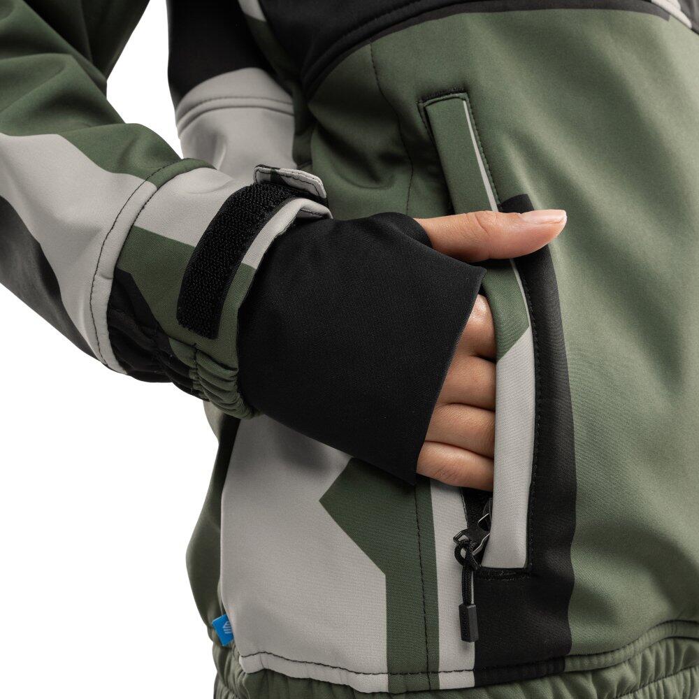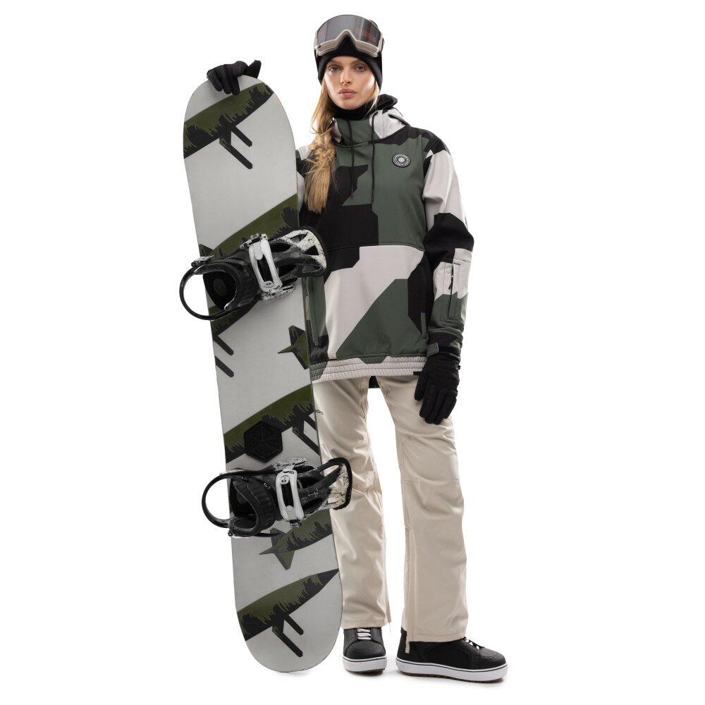 The W1-W Snowy ski and snowboard jacket features three-layer softshell fabric for excellent performance. It is water-resistant and breathable.