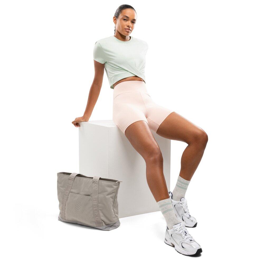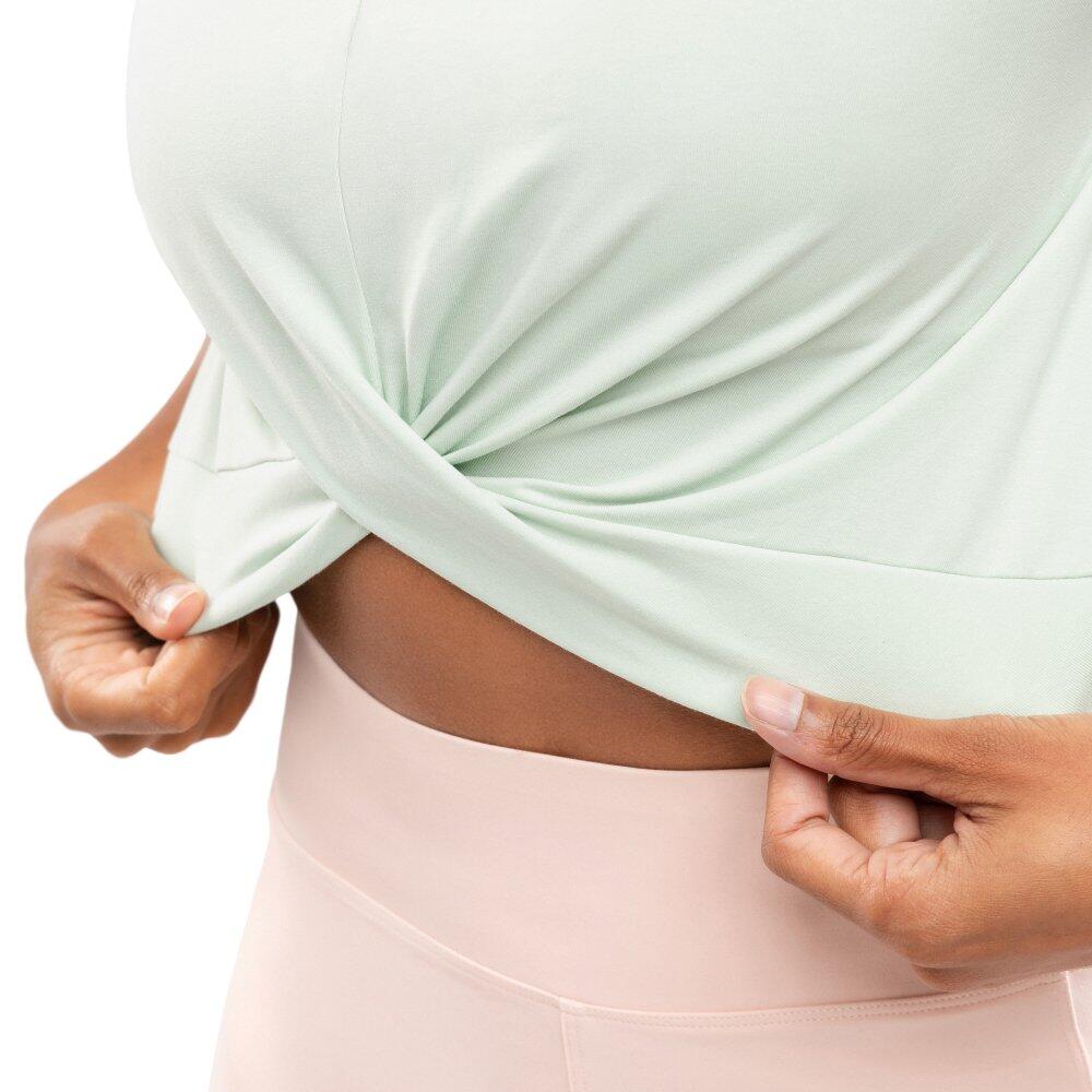Ideal for low impact exercise or daily use. Blend of cotton and elastane fabrics with extra soft finish. Front twist knot design, flat seams and relaxed fit.