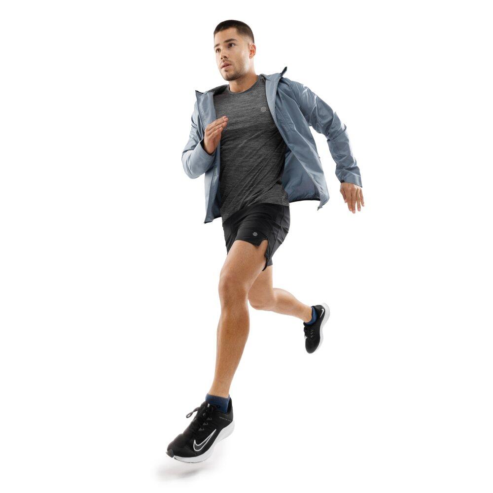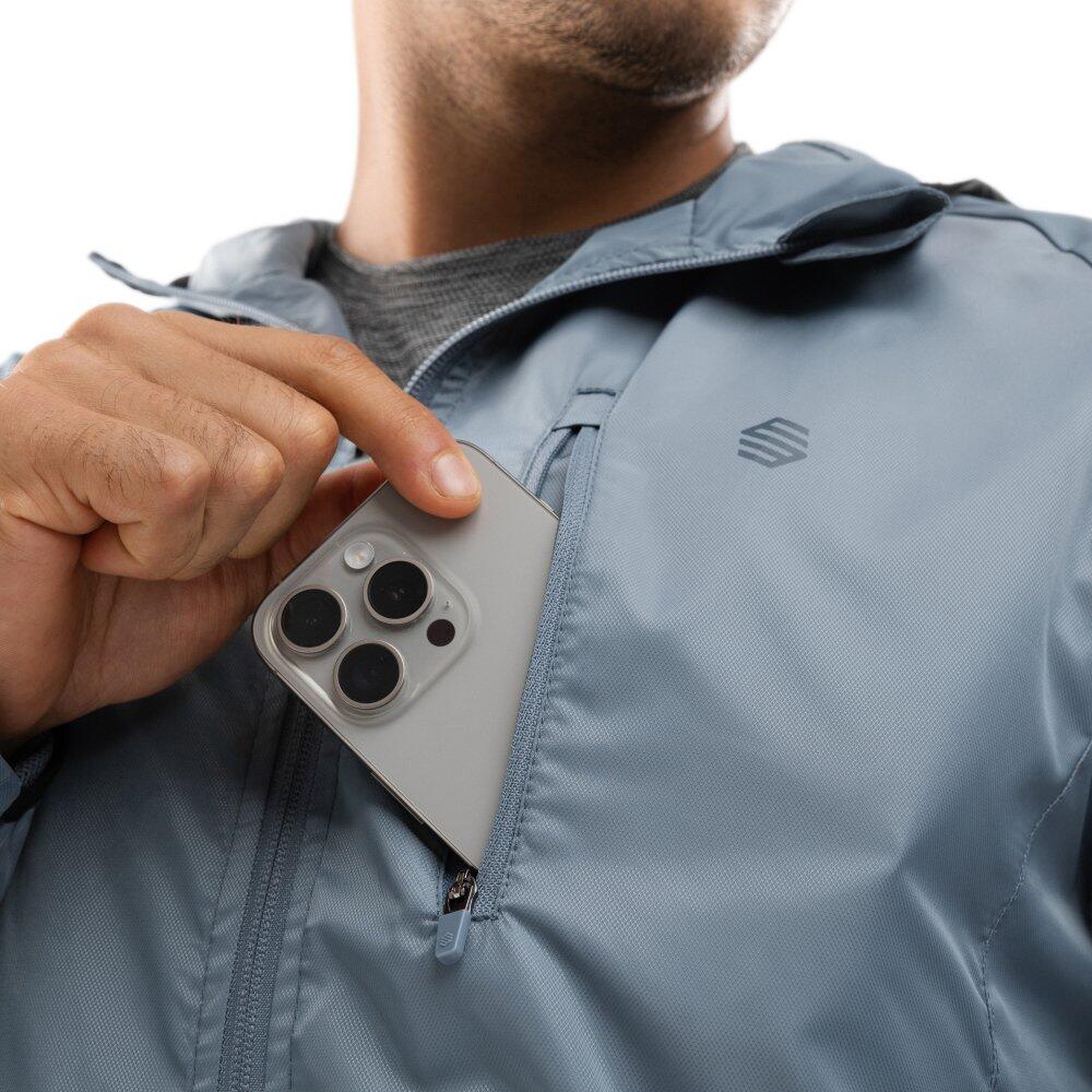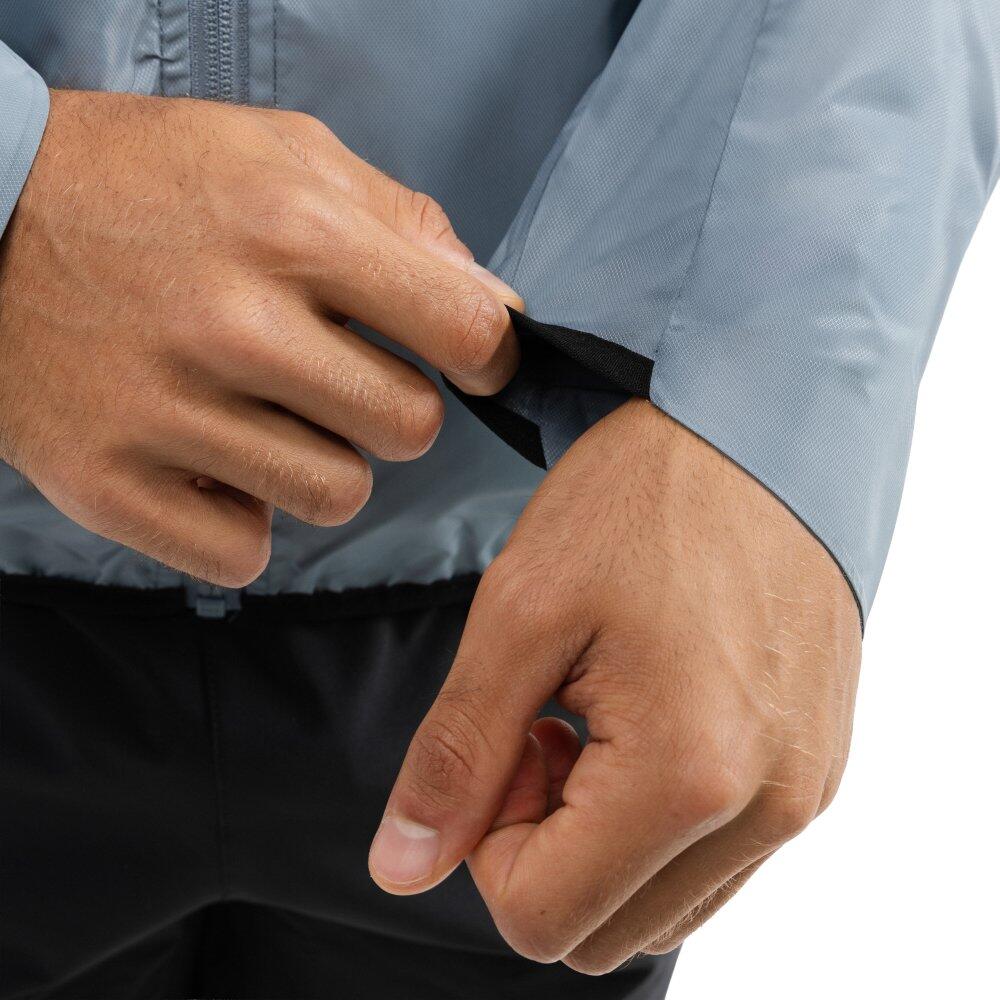 The Evolve windbreaker jacket provides protection and comfort during outdoor workouts with carefully designed details and reflective detailing