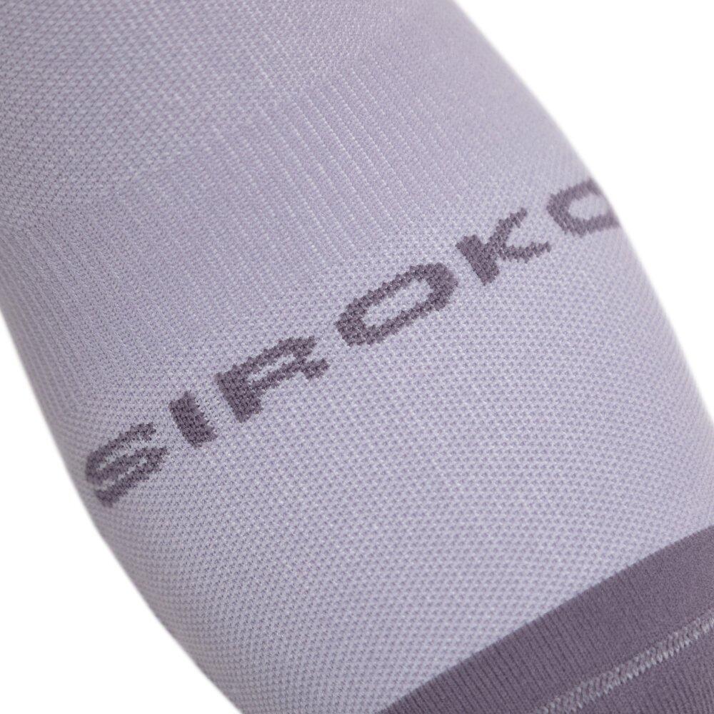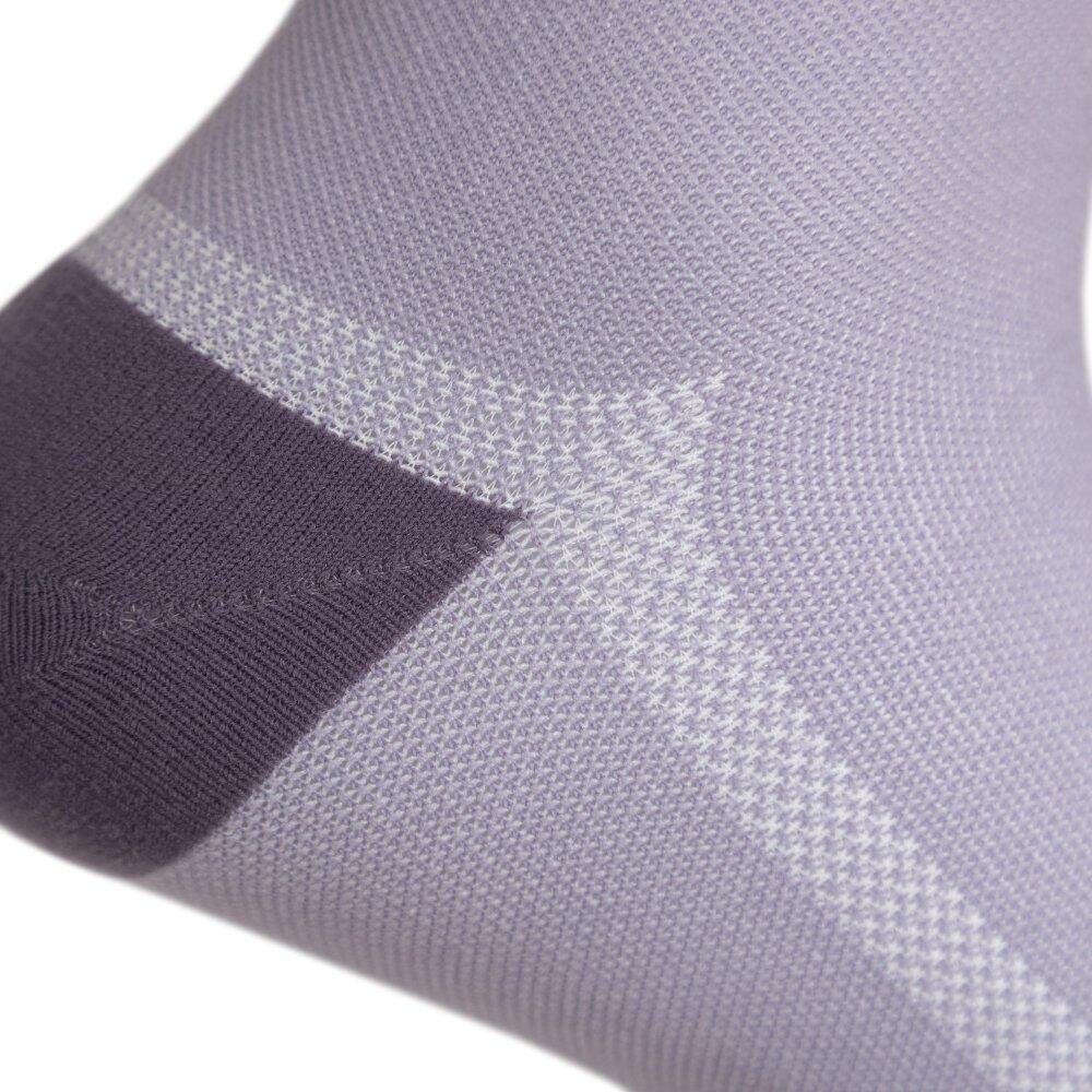 GS1 Lilac cycling socks with micro-perforated fabric for thermoregulation, compression areas, and reinforced heel and toe areas