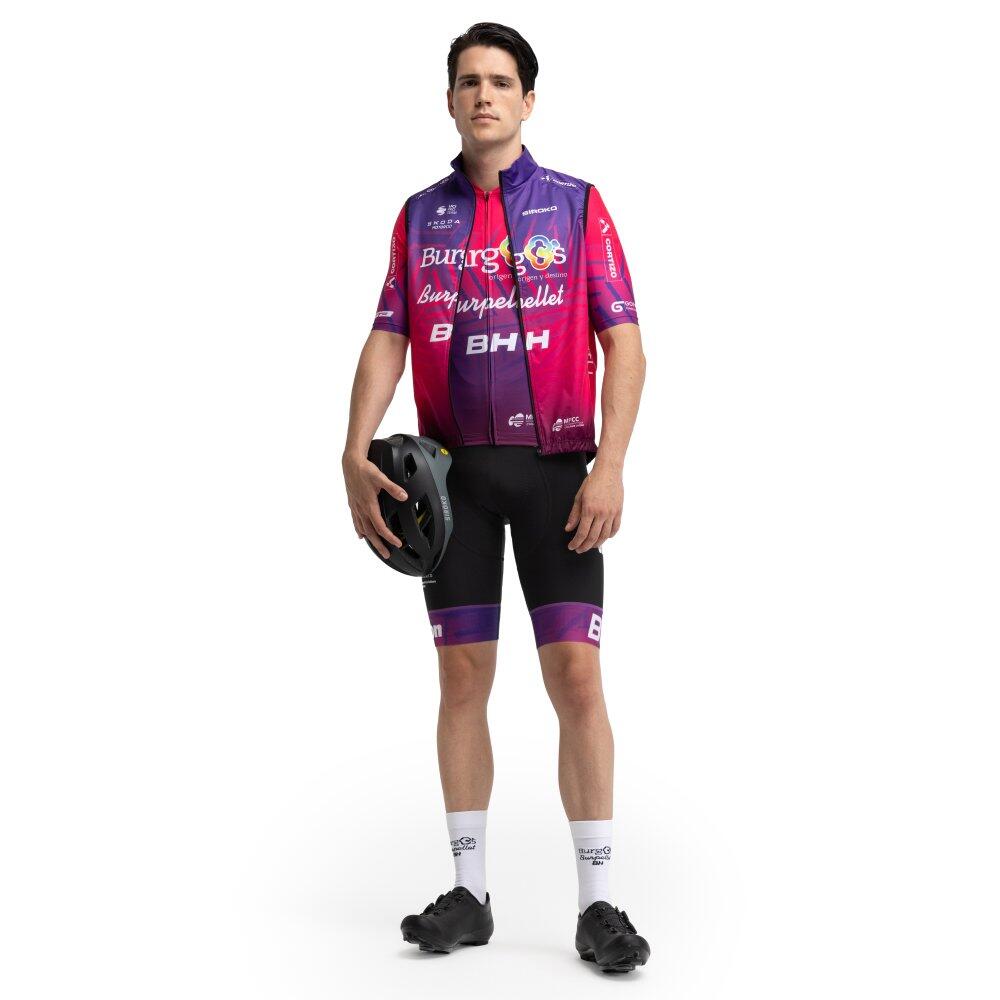 BBBH V1 Burgos Purple ultralightweight, elastic and breathable cycling vest. One rear pocket and semi-automatic main zipper. Compact and portable, easy to carry and store when not in use. Official Bur