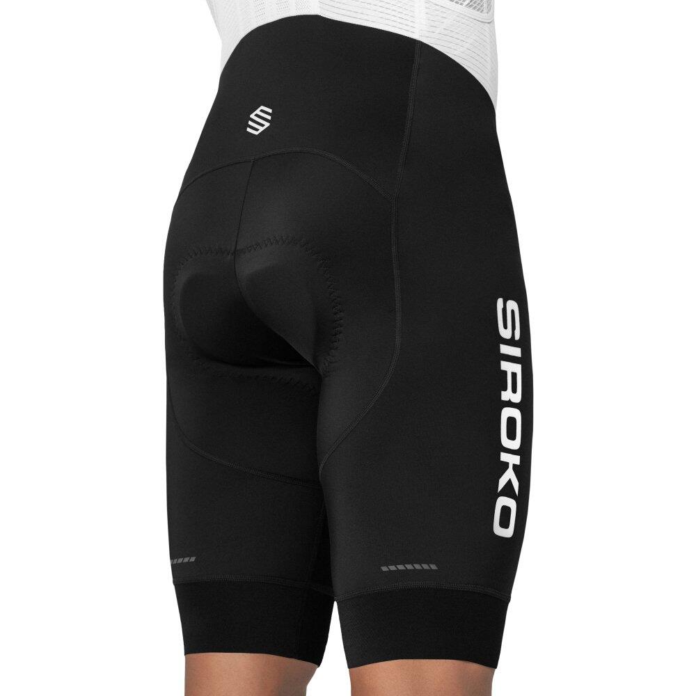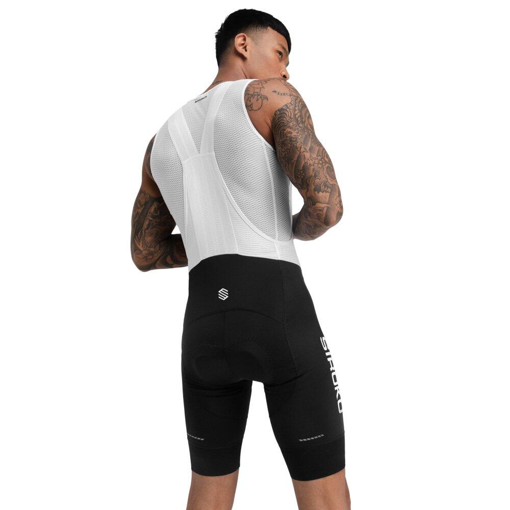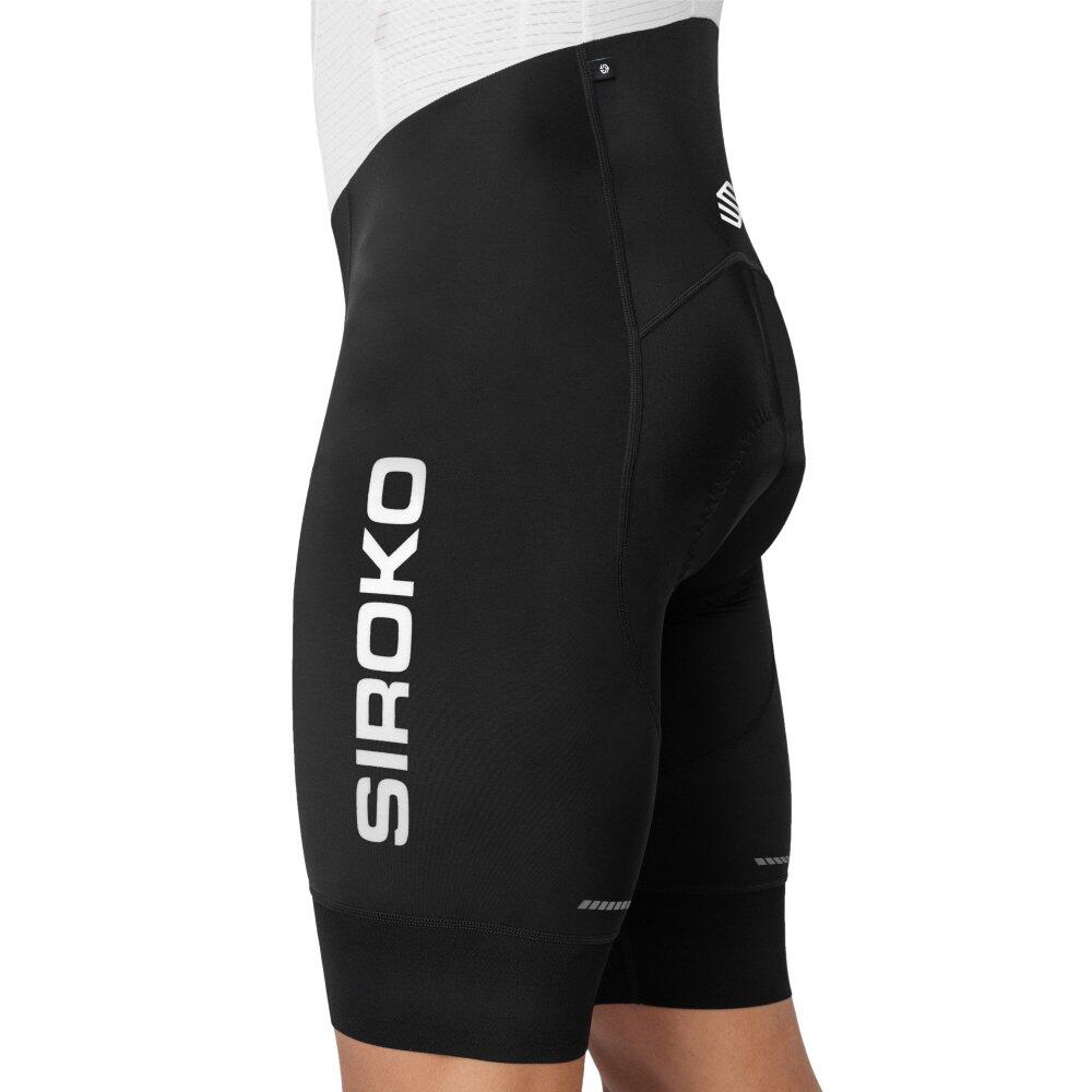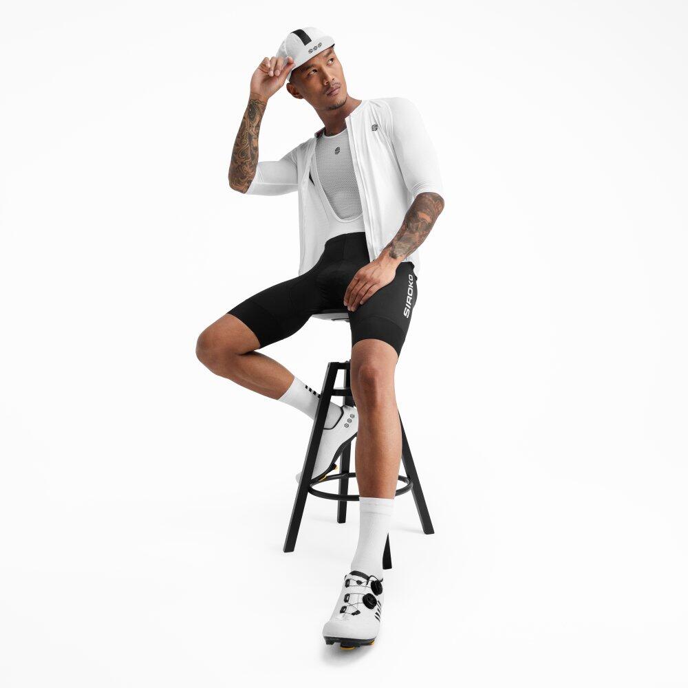 Comfortable Mortirolo bib shorts with high-density Strato chamois, lumbar support panel, and UPF 50 rating