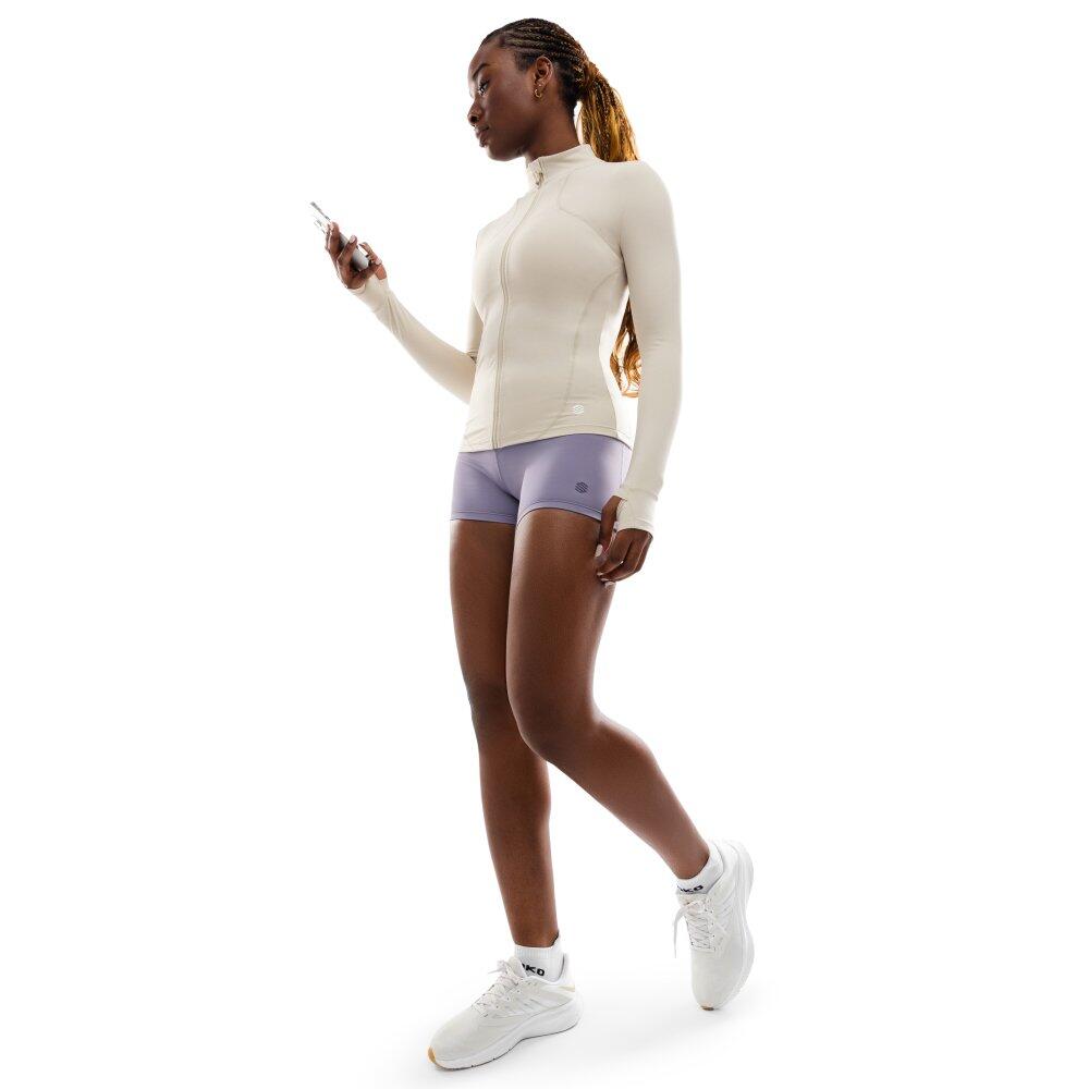Women Fitness ’s ultralightweight full-zip training jacket Division Beige