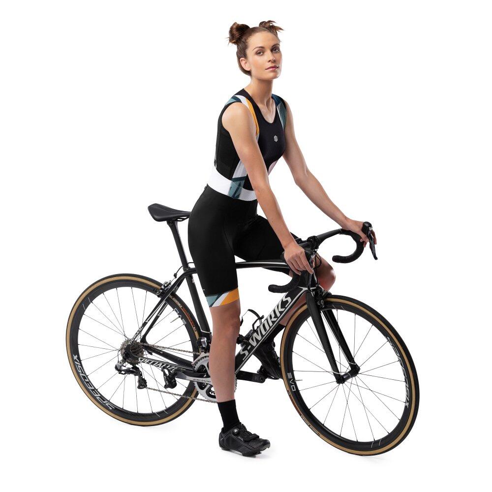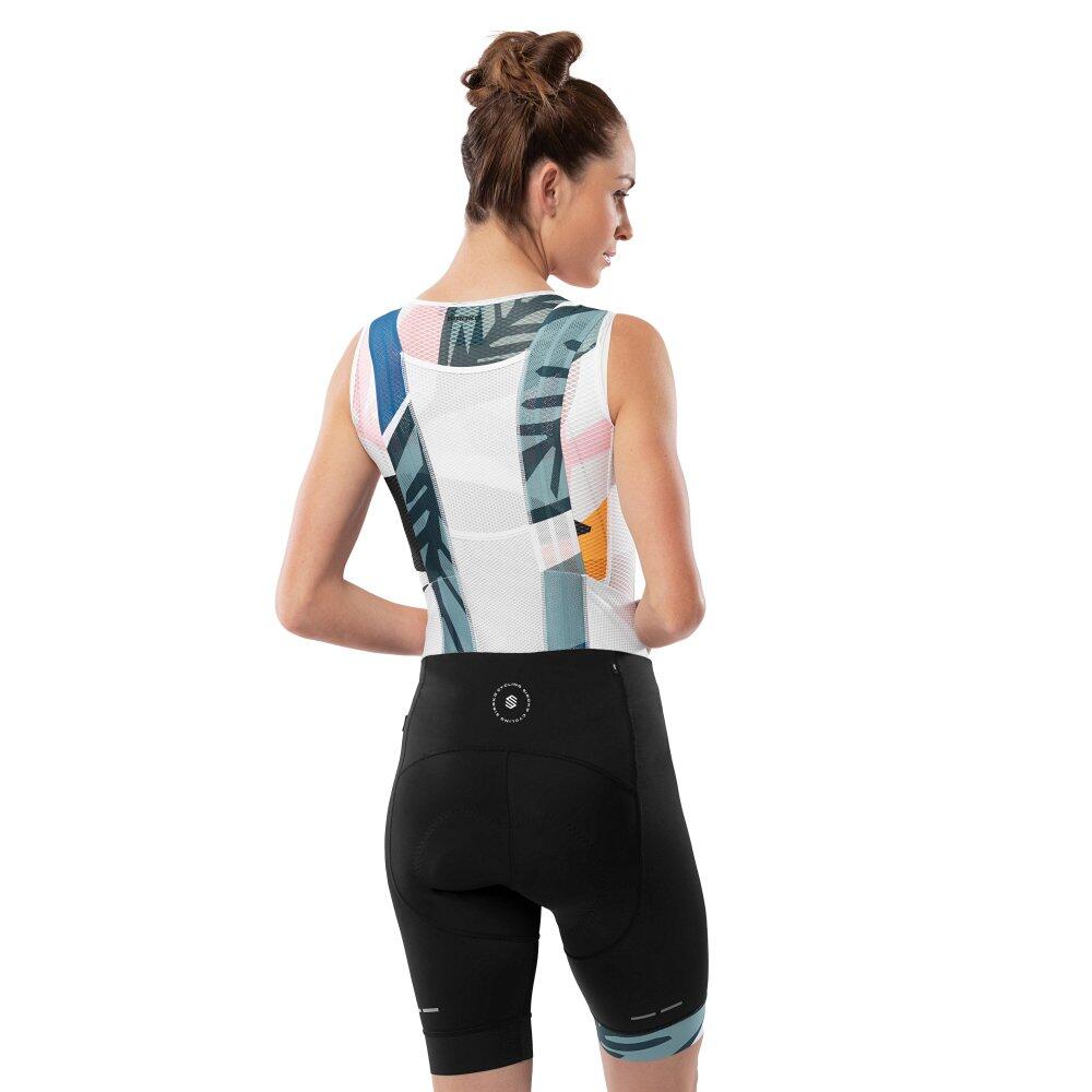 BX Jungle bib shorts for female cyclists with Strato+ chamois, high-compression materials, and UPF 50 rating