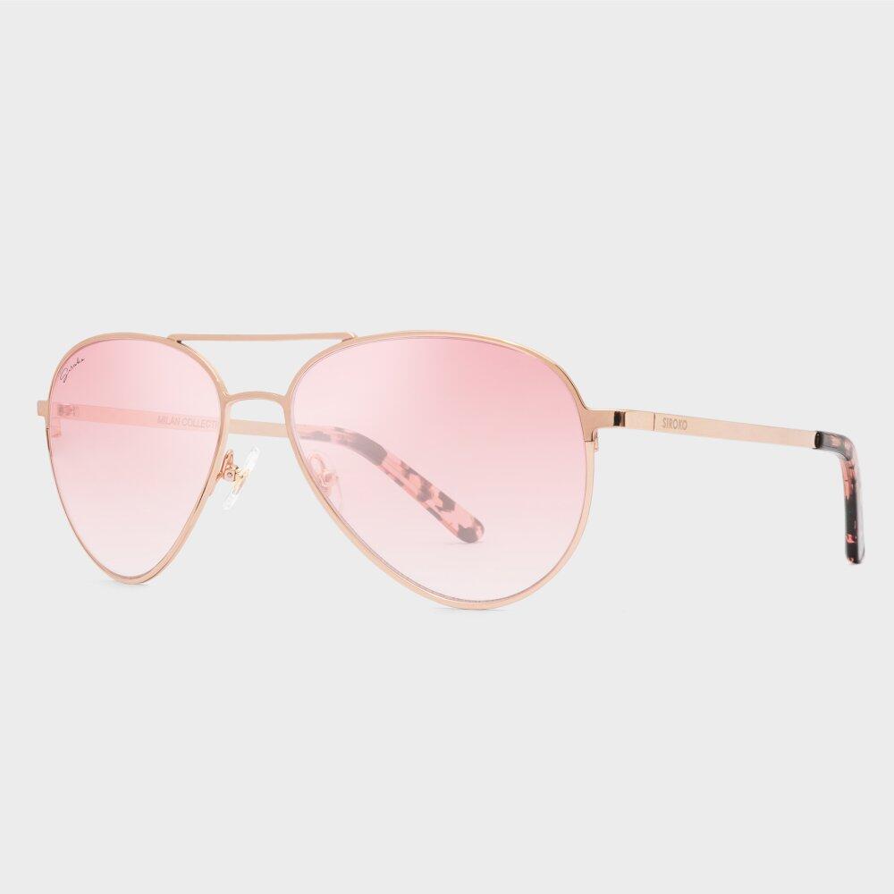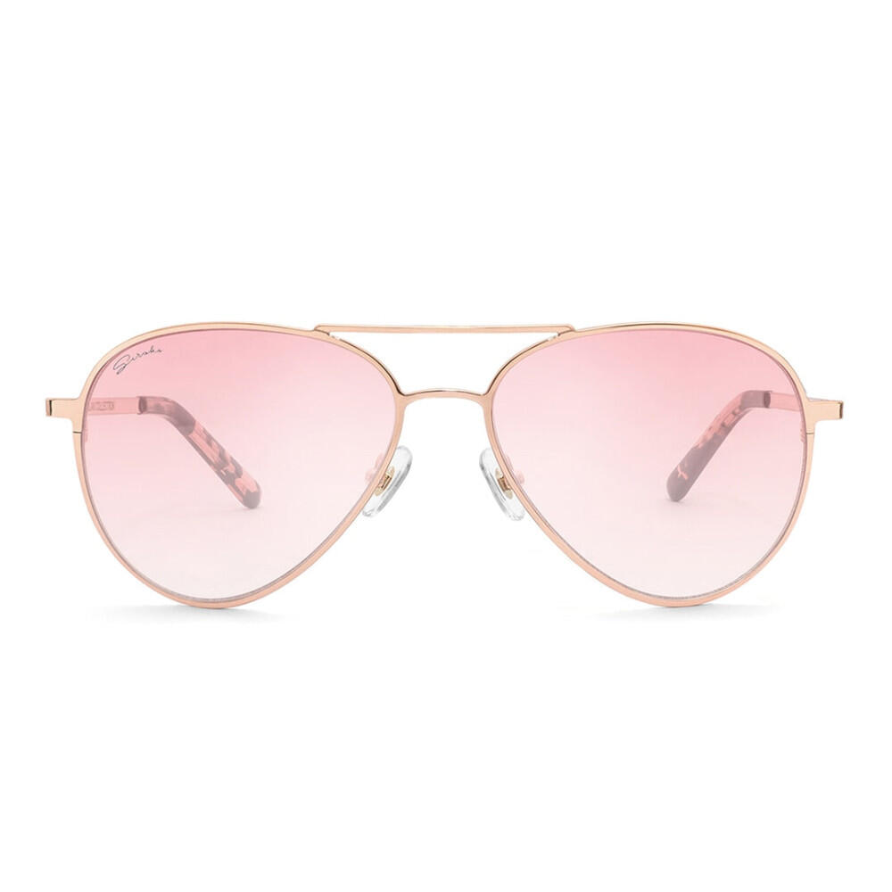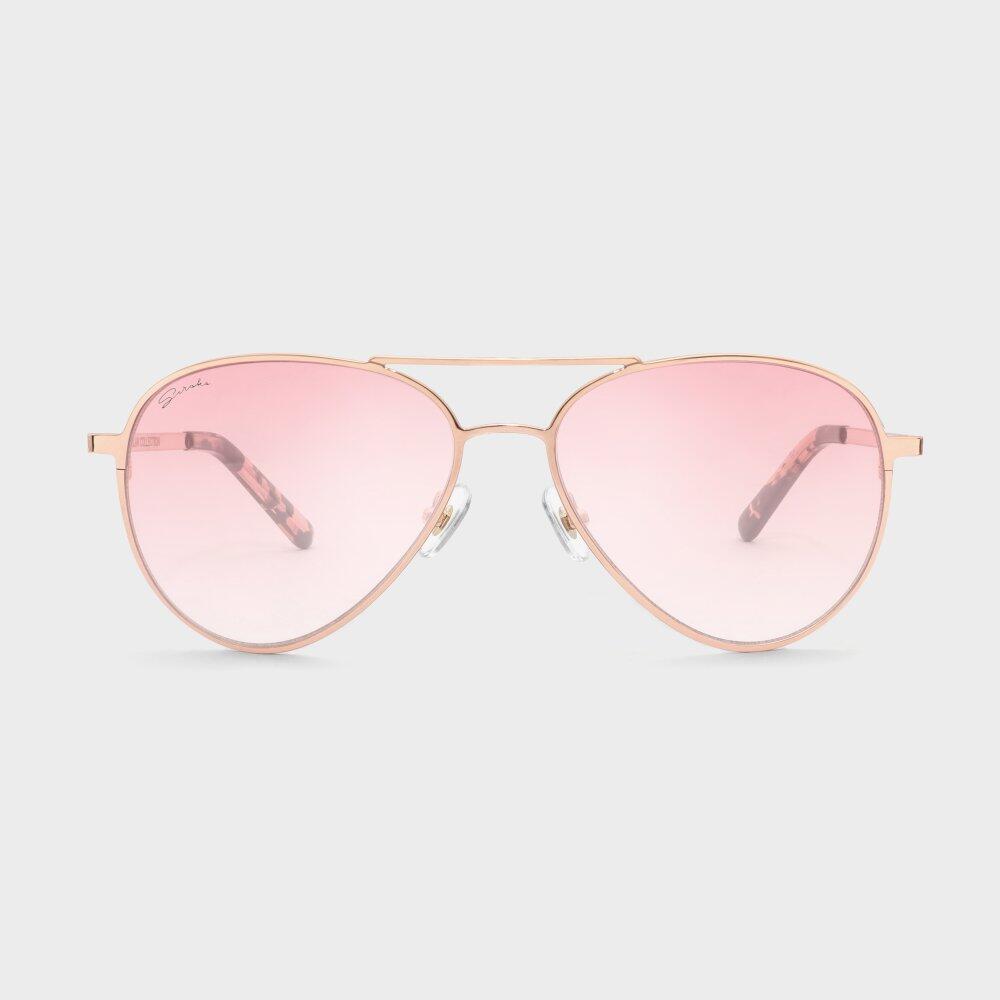 Reinvented aviator frame with rose gold nylon lenses, full UV400 protection, and acetate temple for comfort