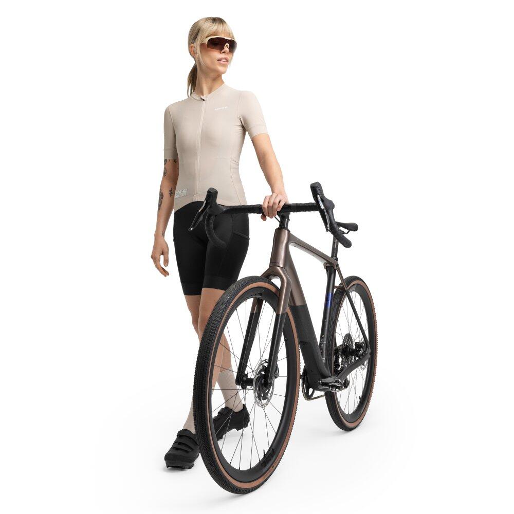 Women Cycling 's short sleeve gravel jersey GM2 Raíz Beige