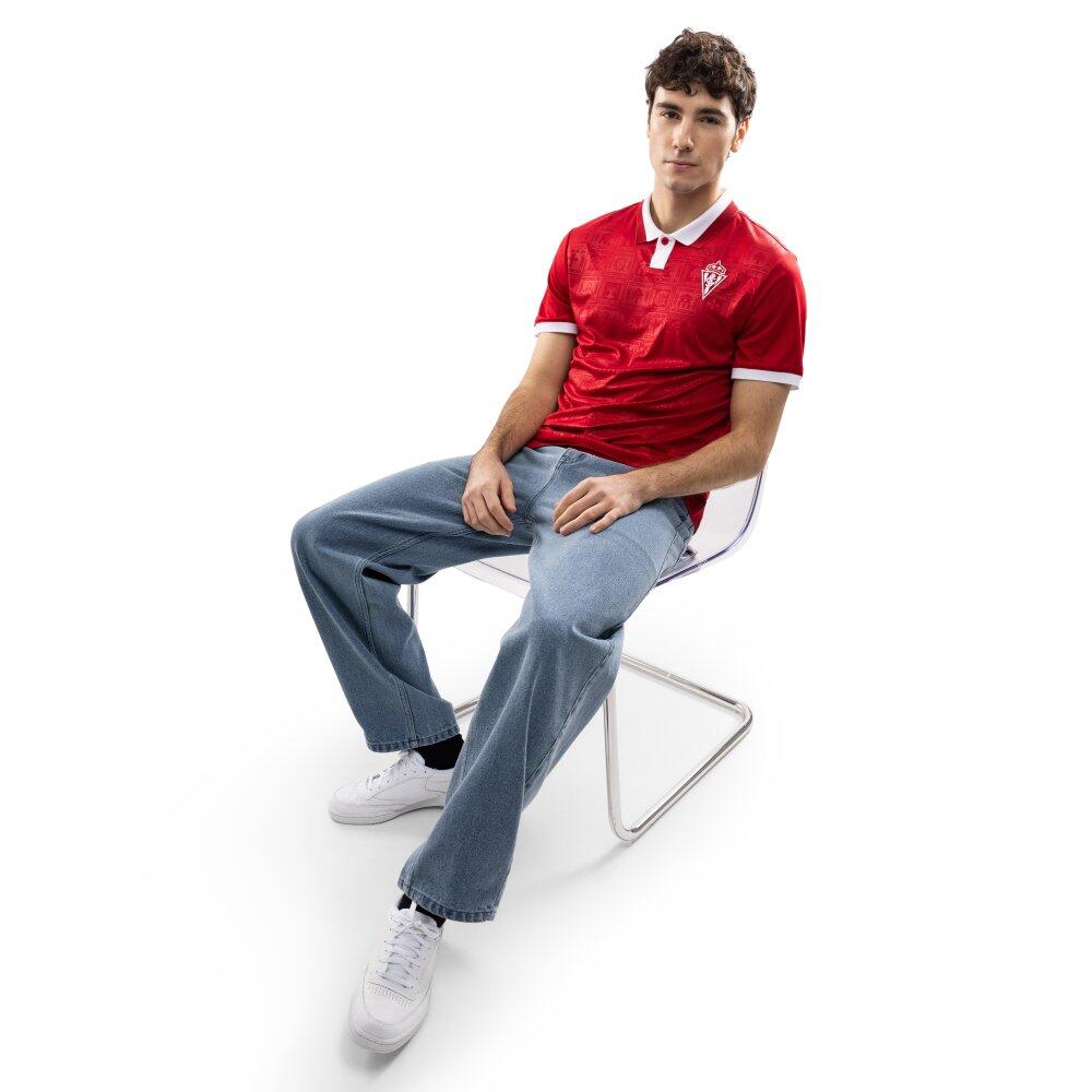 Special edition straight-leg denim jeans for 120th anniversary of Real Sporting de Gijón. Made of stone washed cotton, with classic five-pocket design, belt loops and zipper fly with button closure.