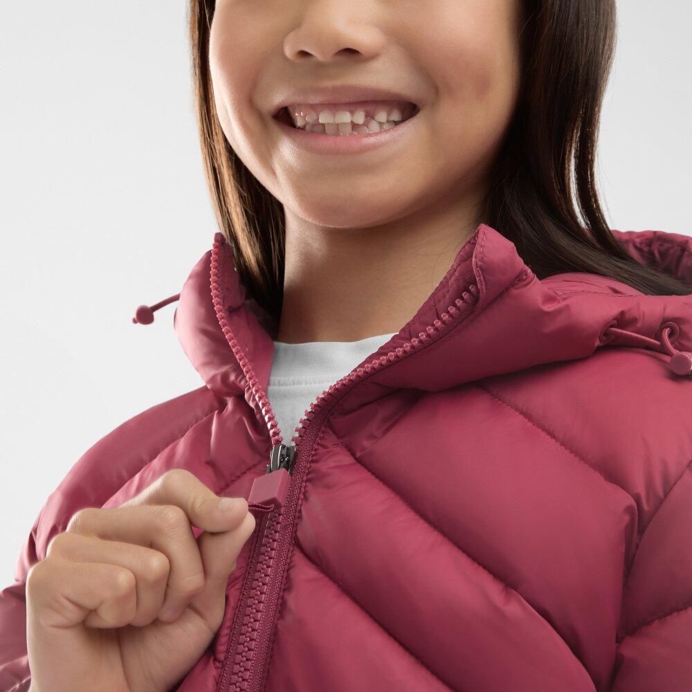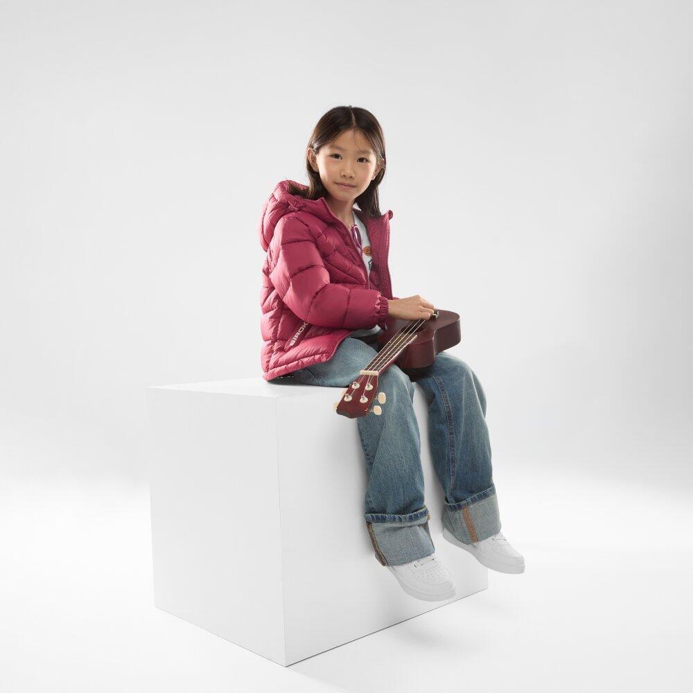 Girls' padded jacket with Sorona® Aura 180 g/m² insulation, ultra-light and ultra-soft fabric, adjustable hood and zipped side pockets for optimal thermal comfort.