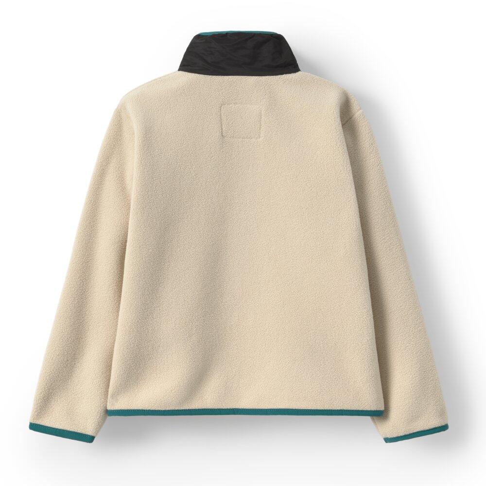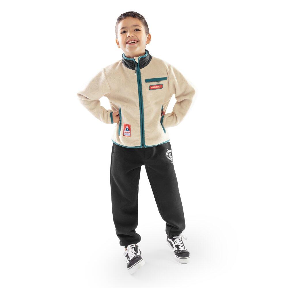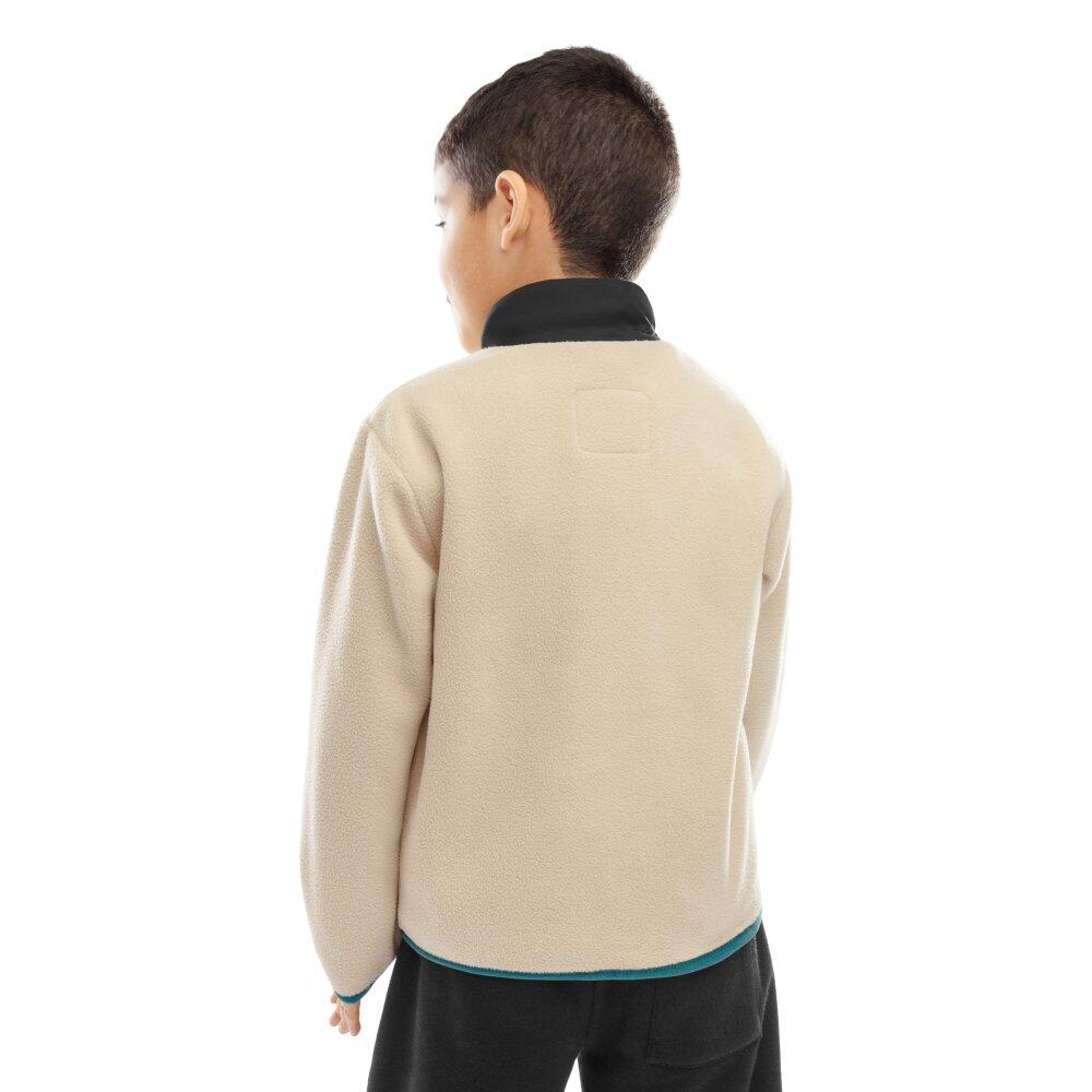 Beige boys' fleece jacket 280 g/m² in recycled polyester, high collar and double-layer zip fastening for warmth and protection during winter sports activities.
