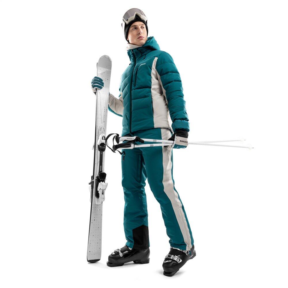Waterproof and breathable men's ski trousers (15,000 mm / 15,000 g/m²) with Sorona® Aura insulation responsibly made, 2-layer softshell, pre-shaped knees and integrated gaiters.