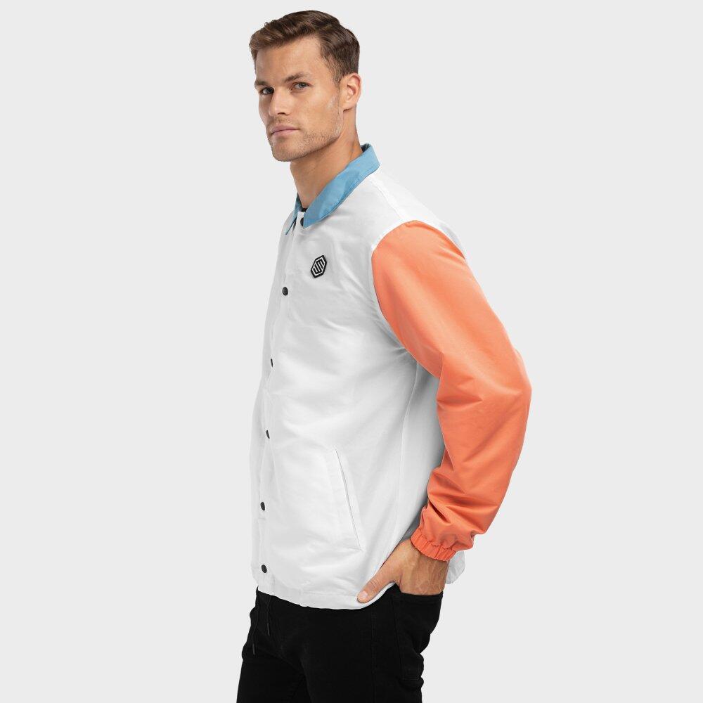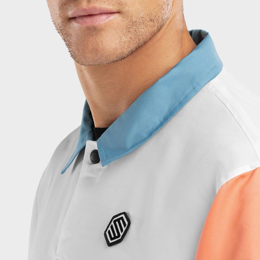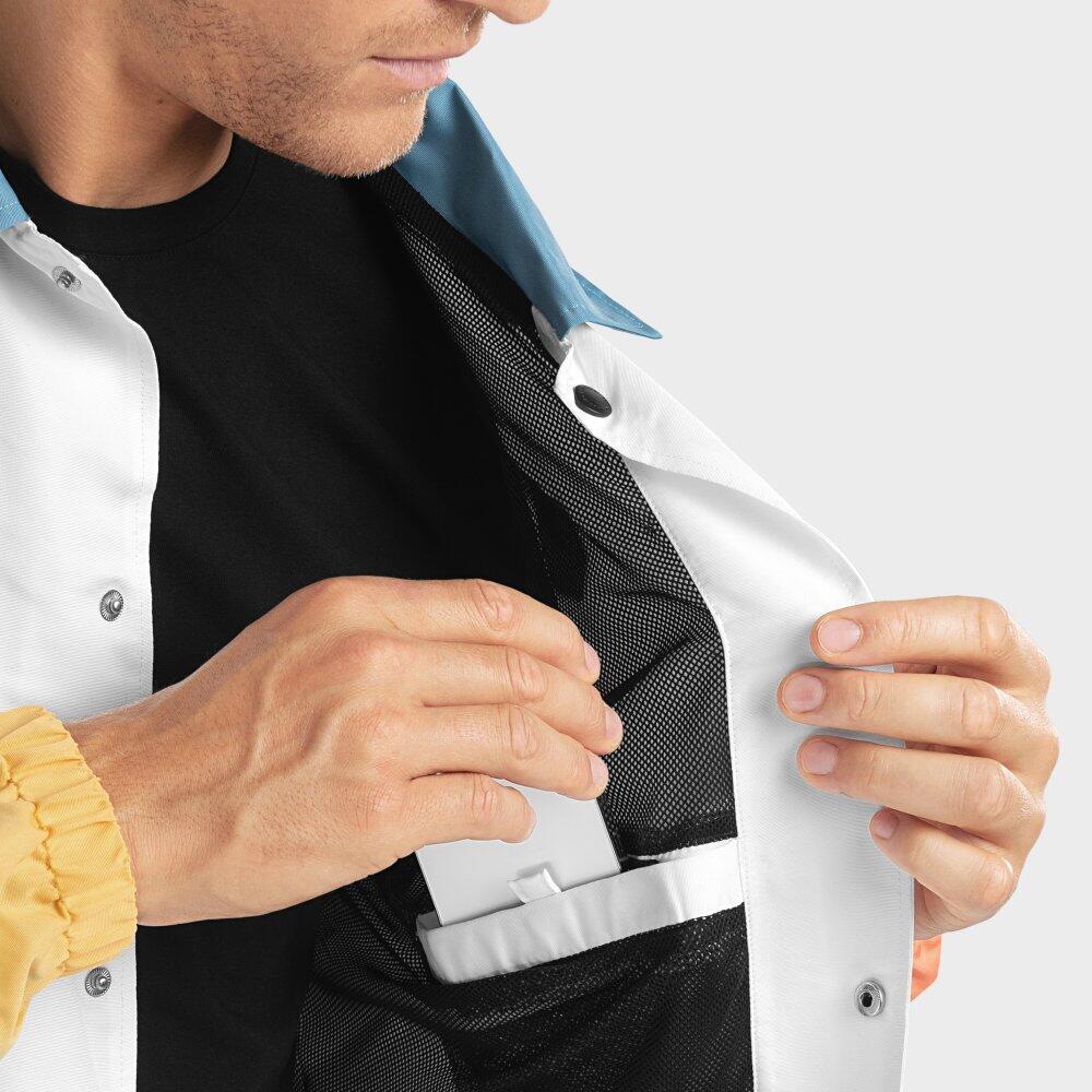The Mentawai jacket is perfect for surfers with its DWR coating, mesh lining, and comfortable design Made of 100% polyester with snap fasteners and an internal pocket