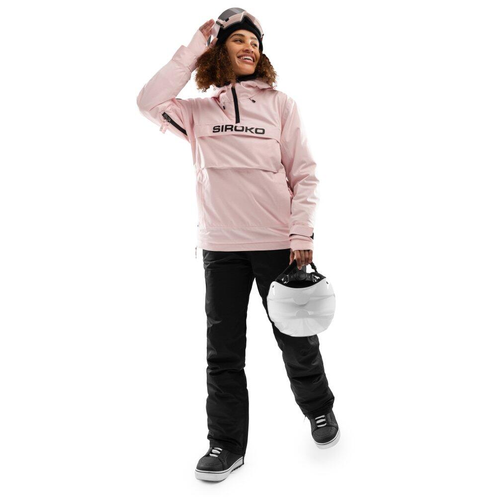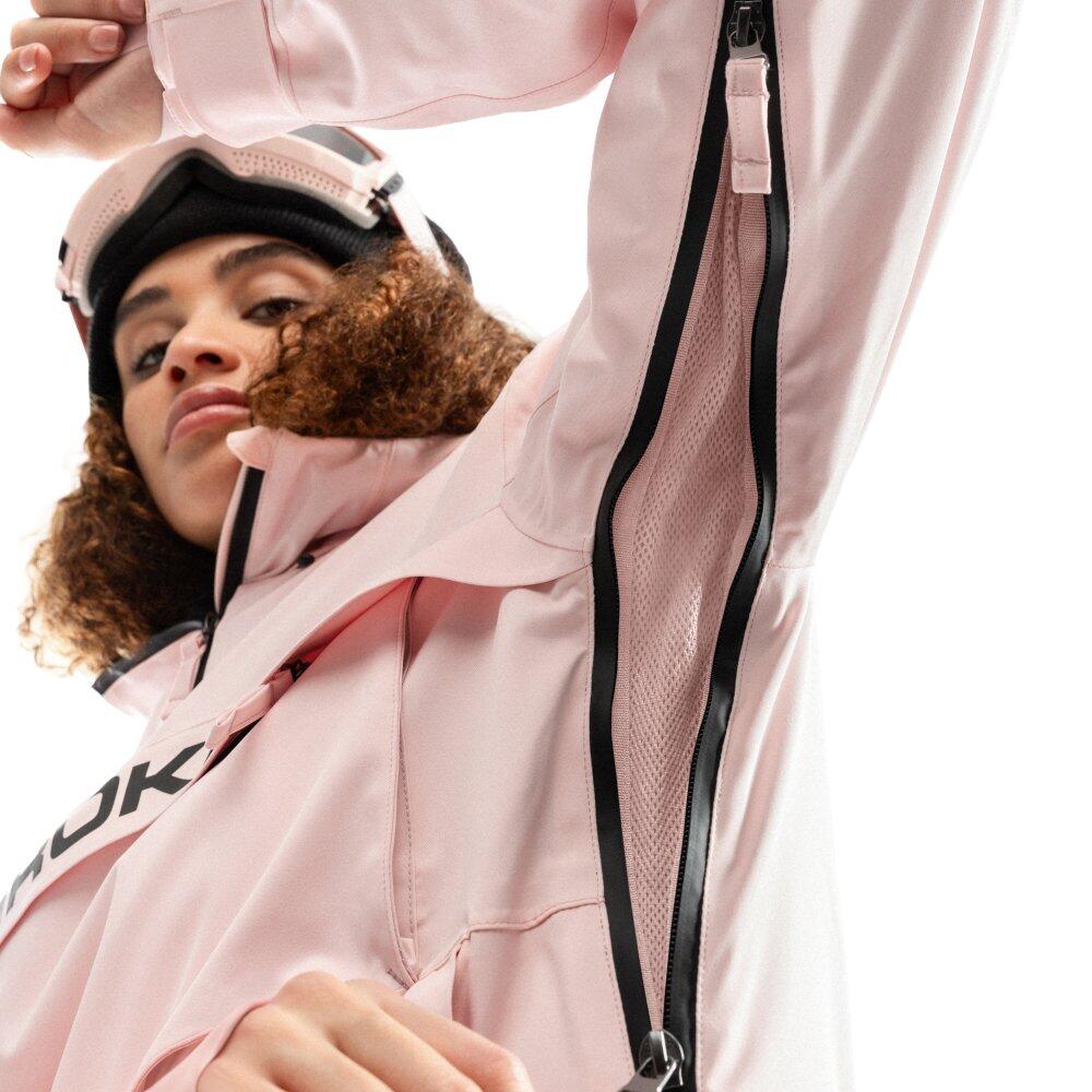 Women's waterproof, breathable snowboard jacket with Sorona® Aura insulation sourced responsibly, adjustable hood, removable powder skirt and functional pockets.
