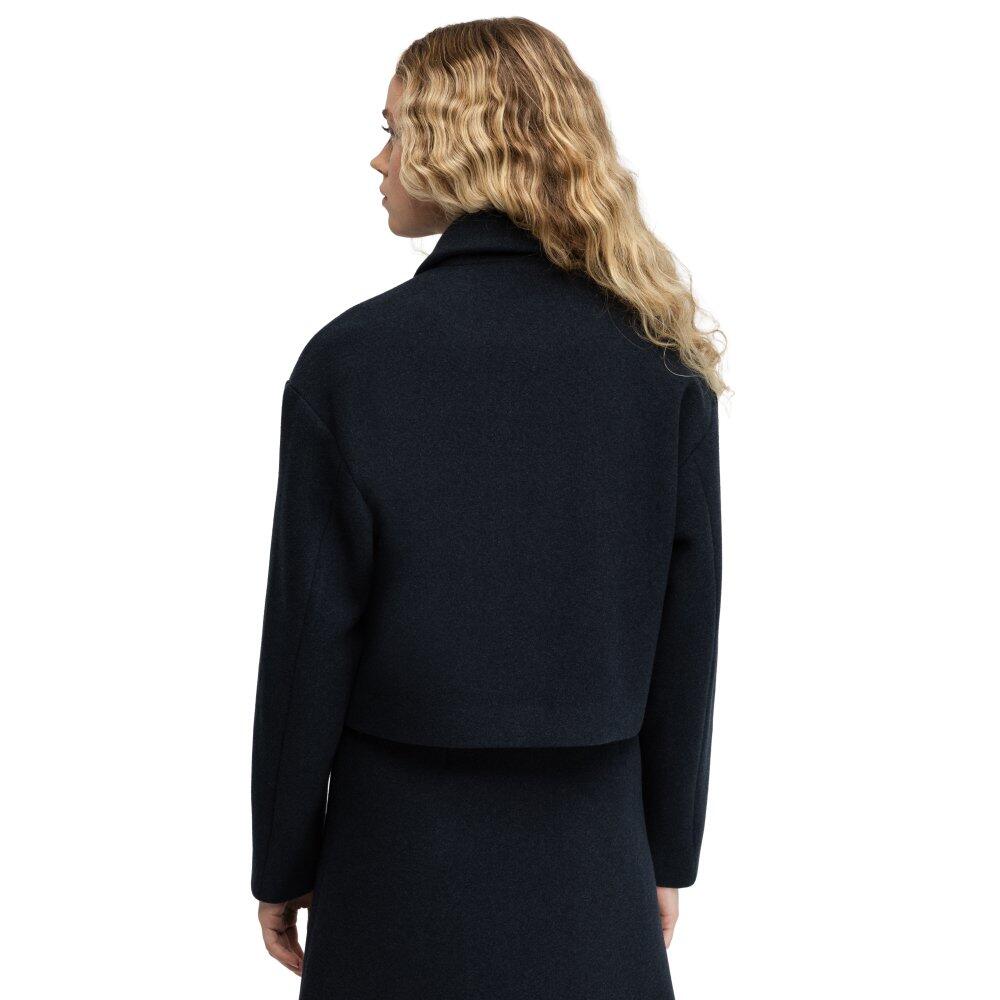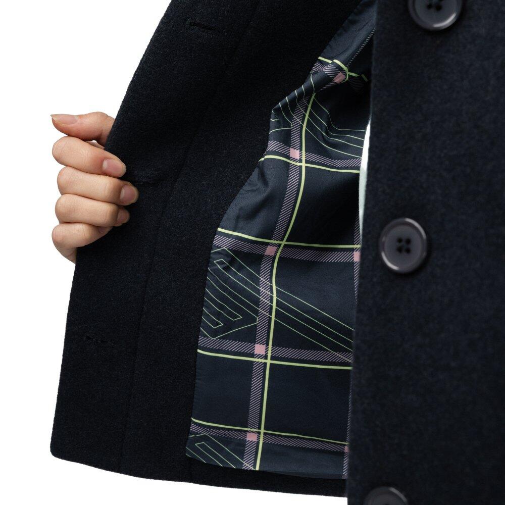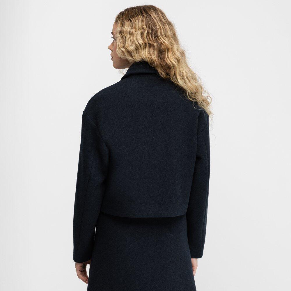 Premium heavyweight wool jacket with classic tartan lining. Soft, warm and stylish, with hidden front button placket and two front welt pockets. Modern cropped silhouette and sleek, minimalist aesthet