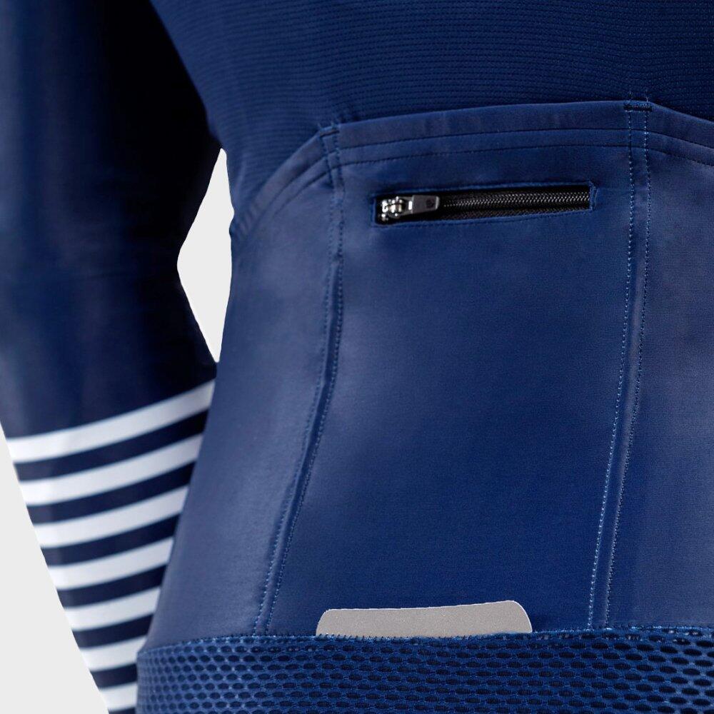 The Alps cycling jersey with Race Slim Fit, VNEC, Breathlock+ technology, polyester and spandex fabrics, SBS Full Hidden zipper, and reflective safety tag
