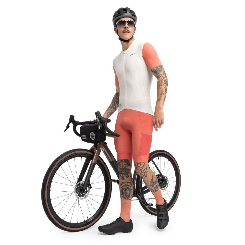 Short sleeve cycling jersey designed specifically for gravel riding. Ultralightweight, extra durable, quick-drying fabric. Flat seams and four pockets.