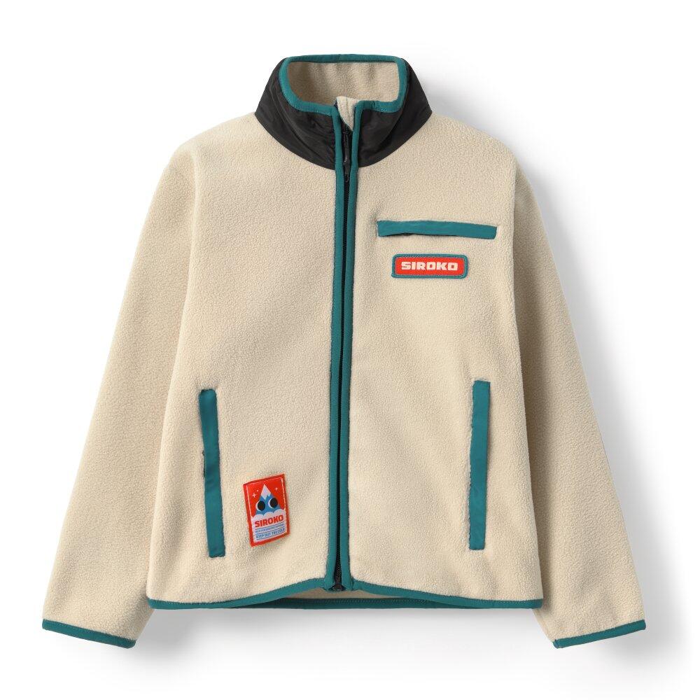 Beige girls' fleece jacket 280 g/m² in recycled polyester, high collar and double zip placket for optimal thermal protection, ideal as a mid-layer for freestyle snowboarding.