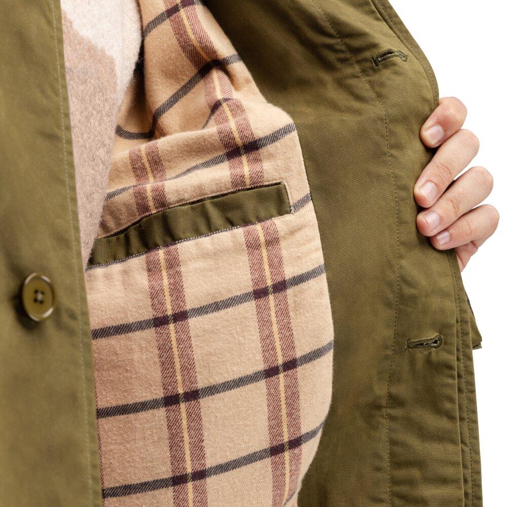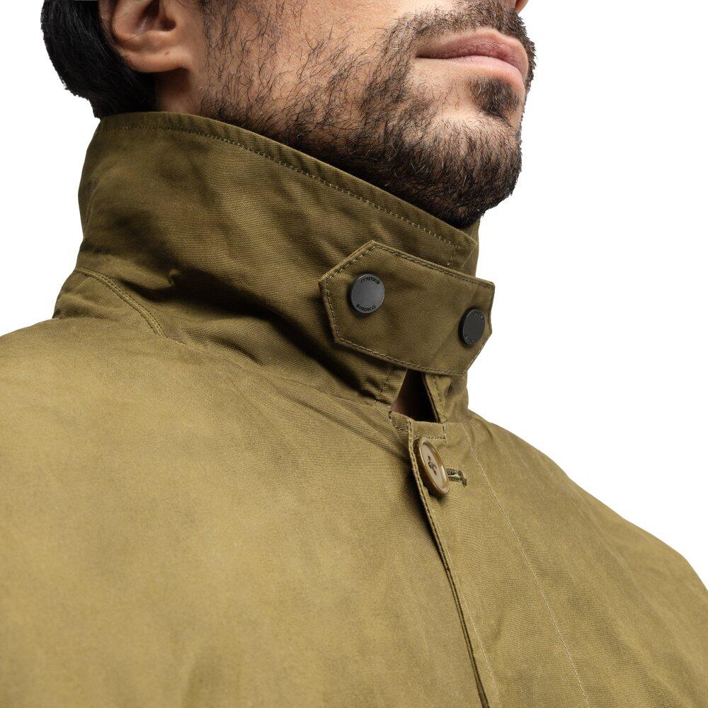 Water-repellent waxed cotton coat with classic tartan lining and two front pockets. Featuring front button closure and adjustable cuffs. Ideal for layering through transitional seasons, combining comf