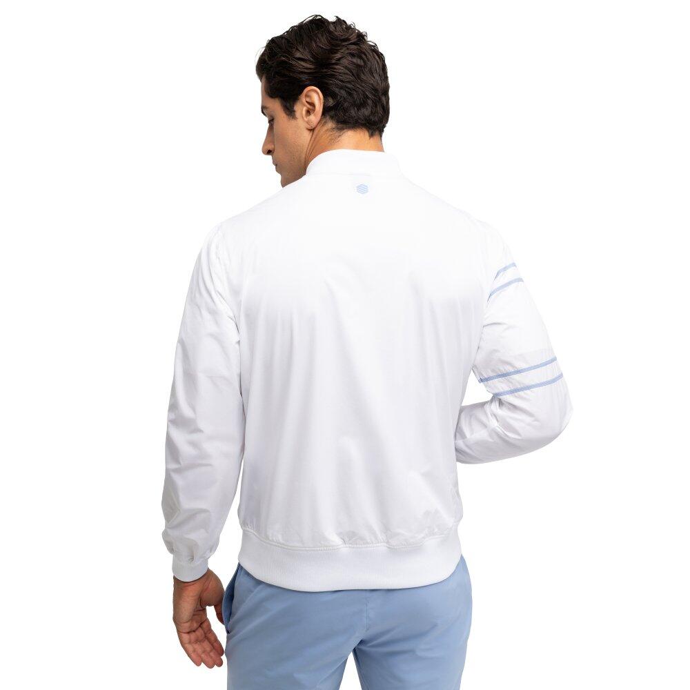 Lightweight and comfortable tennis jacket. Front zipper, ribbed bomber collar, cuffs and bottom hem. Regular fit with side pockets. Perfect for training or everyday use.