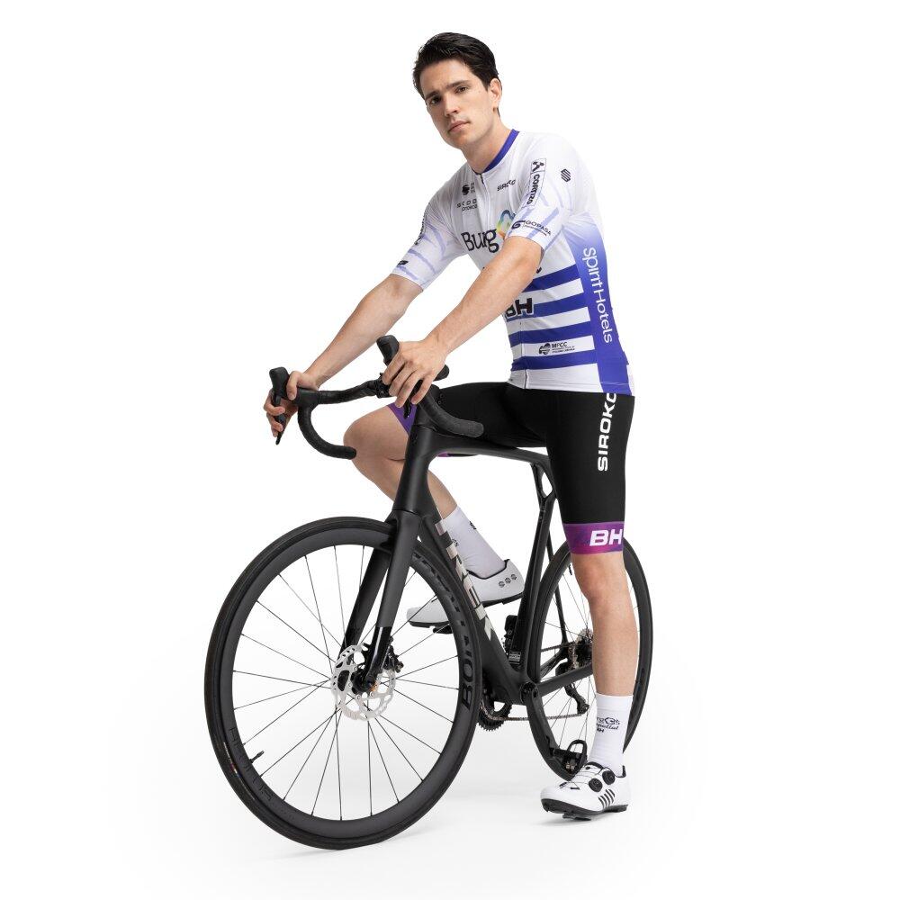 BBBH Campeon Uruguay ultralightweight, elastic and breathable cycling jersey. Short aerodynamic sleeves, three rear pockets and semi-automatic zipper. Official Burgos Burpellet BH x Siroko collab.