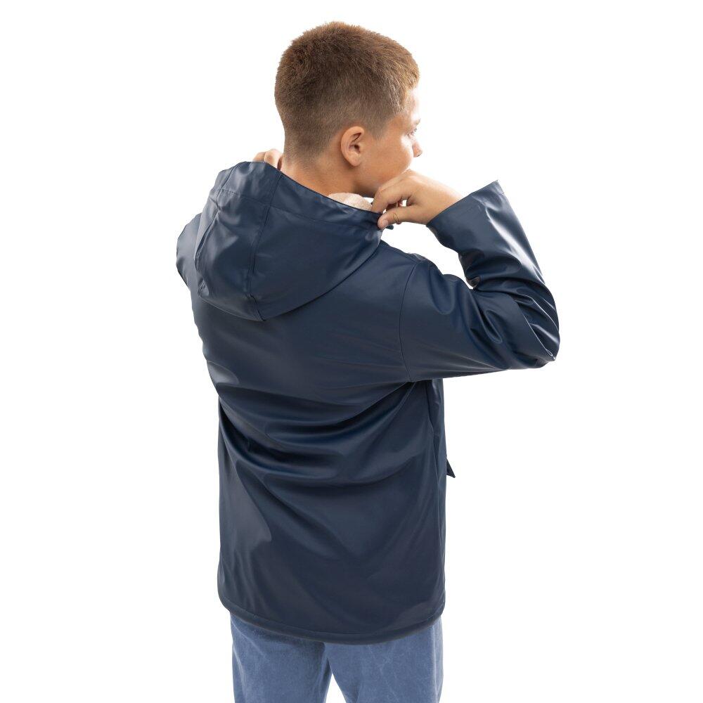 Waterproof rain jacket (5,000 mm water column) with sherpa lining. Full protection against rain and cold. Adjustable hood and three pockets.