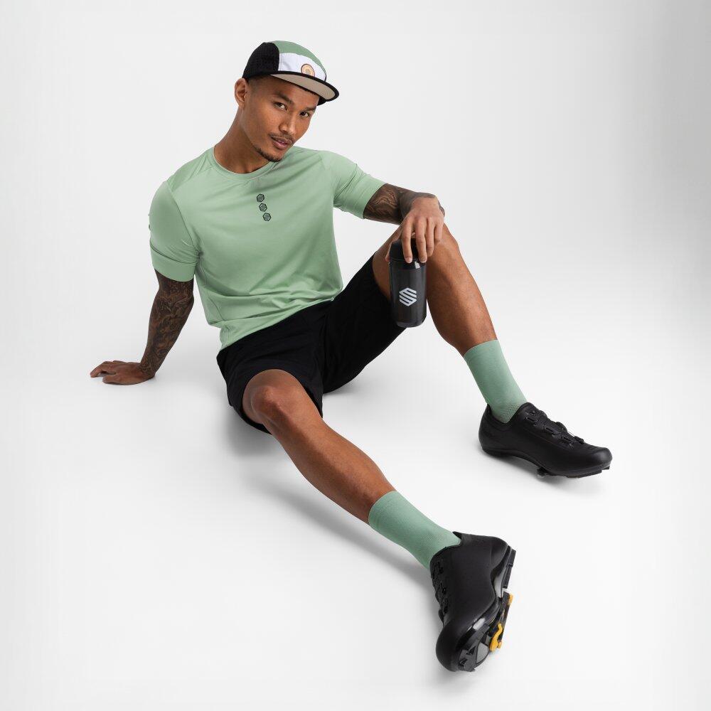 The Poplar technical t-shirt is designed for gravel cycling with Coolmax fabric for breathability, moisture-wicking, and a zippered rear pocket