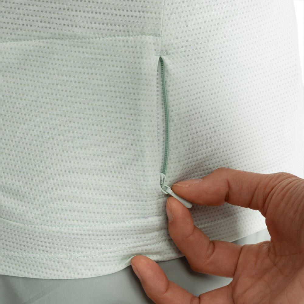 Perfect choice for trekking, hiking and outdoor sports. Lightweight, microperforated fabric for enhanced breathability. Rear zippered pocket.