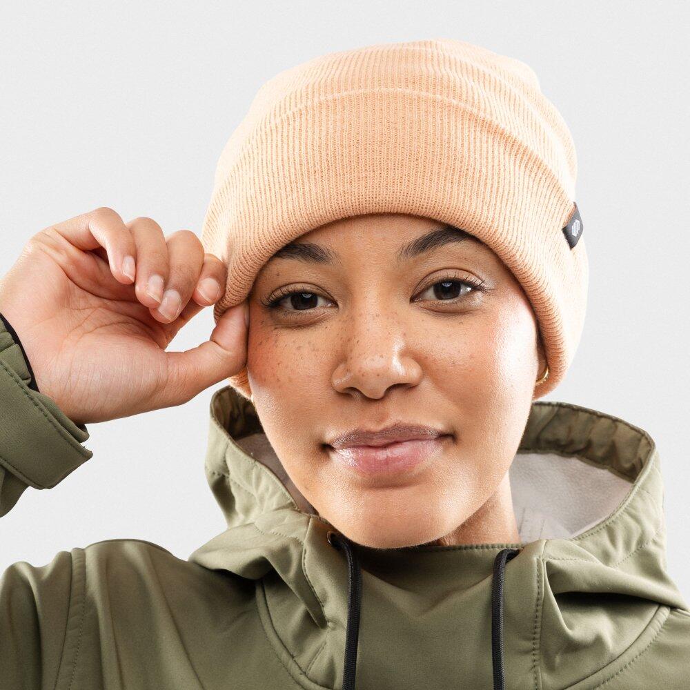 Comfortable and stylish Snowflake Brown beanie made of durable, machine washable 100% acrylic fabric One size fits all