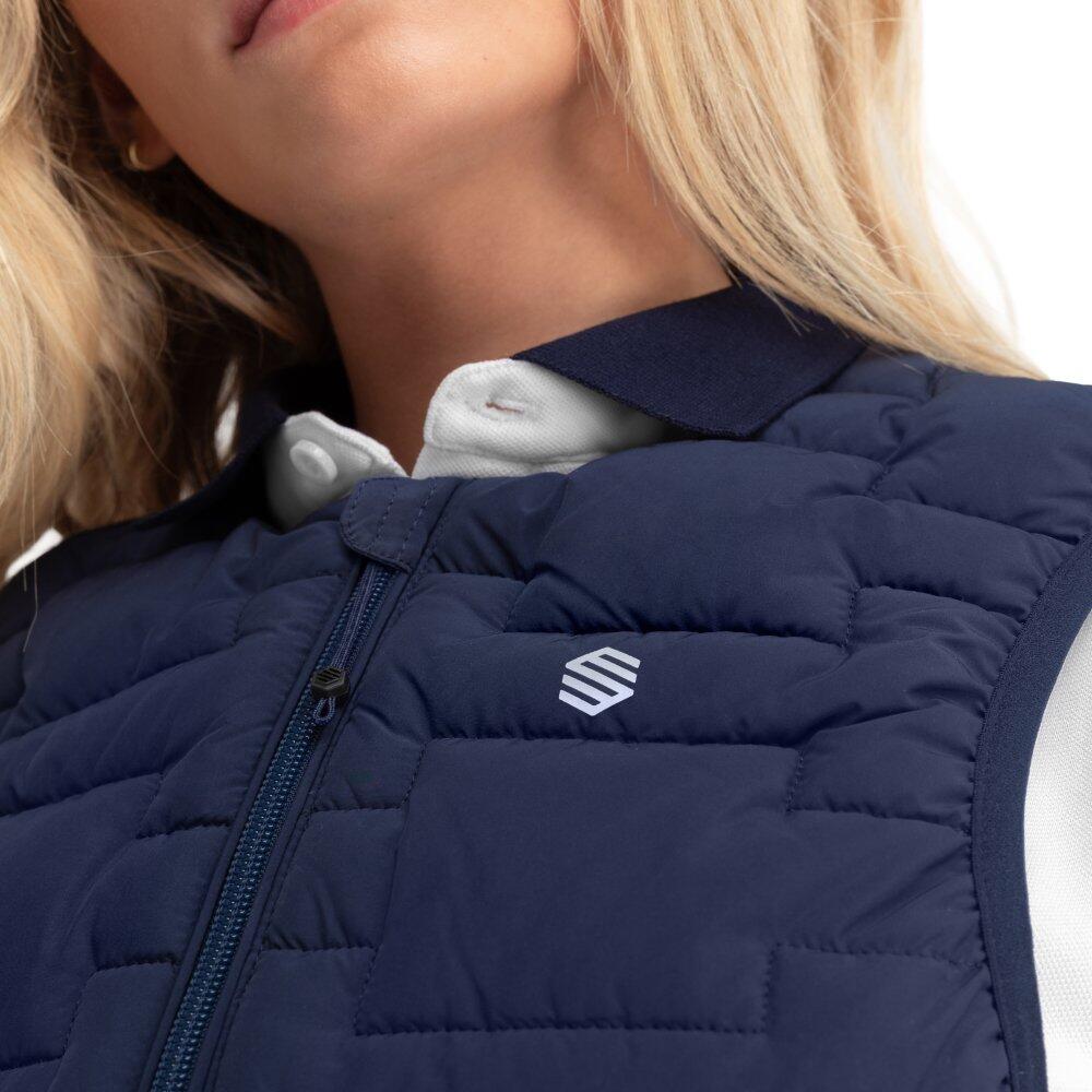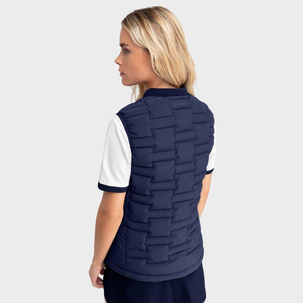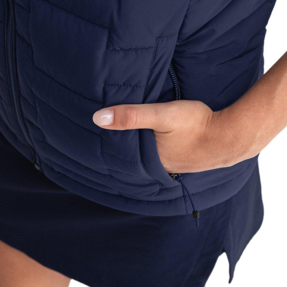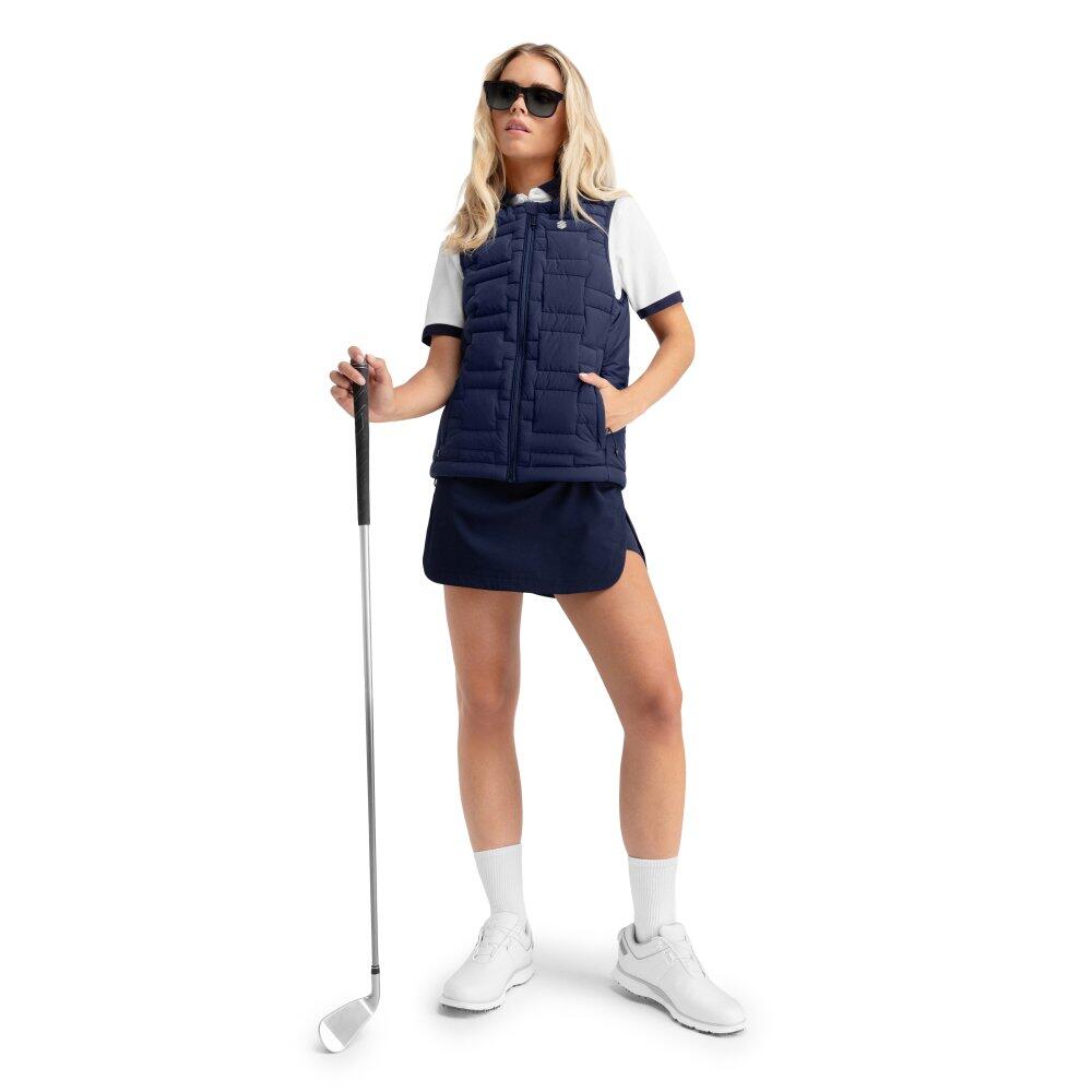Women's golf gilet with Sorona® Aura insulation, UPF 50+, regular fit, adjustable drawcord at the waist and zipped side pockets for optimal comfort.