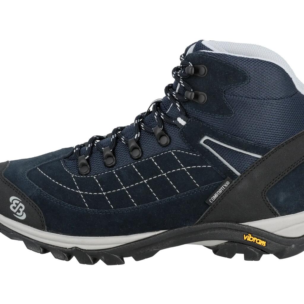 Brütting Mount Crillon High men's hiking shoe in waterproof suede leather, deeply lugged Vibram sole and removable textile insole for optimal comfort and grip