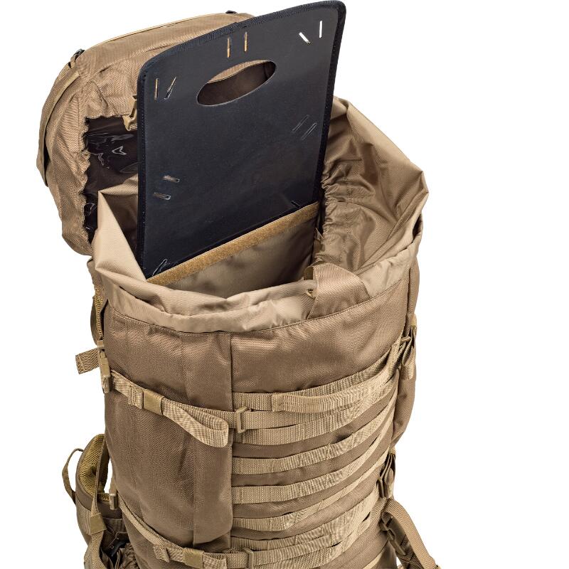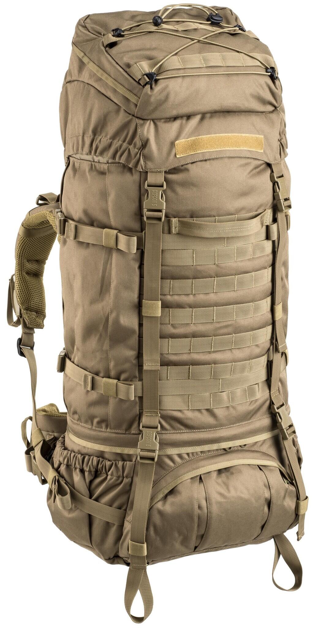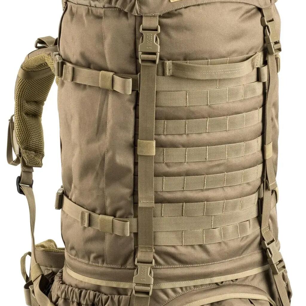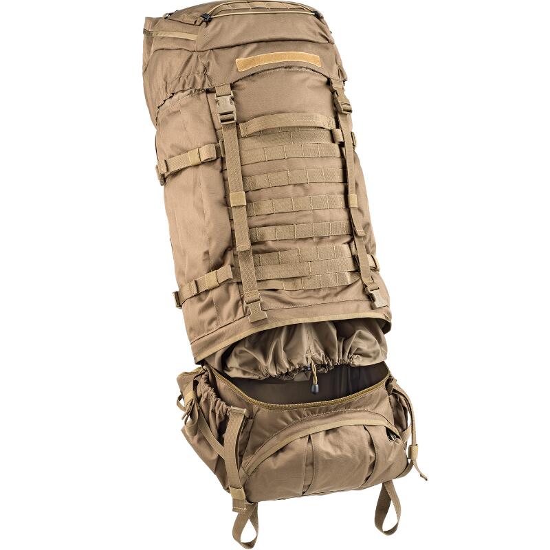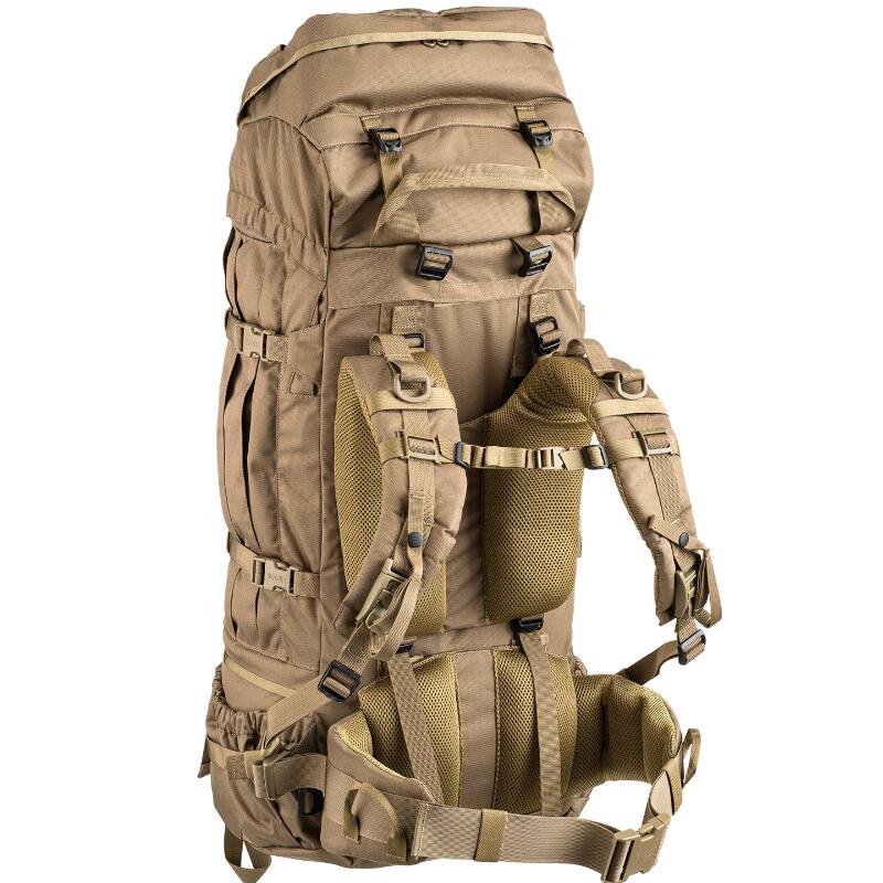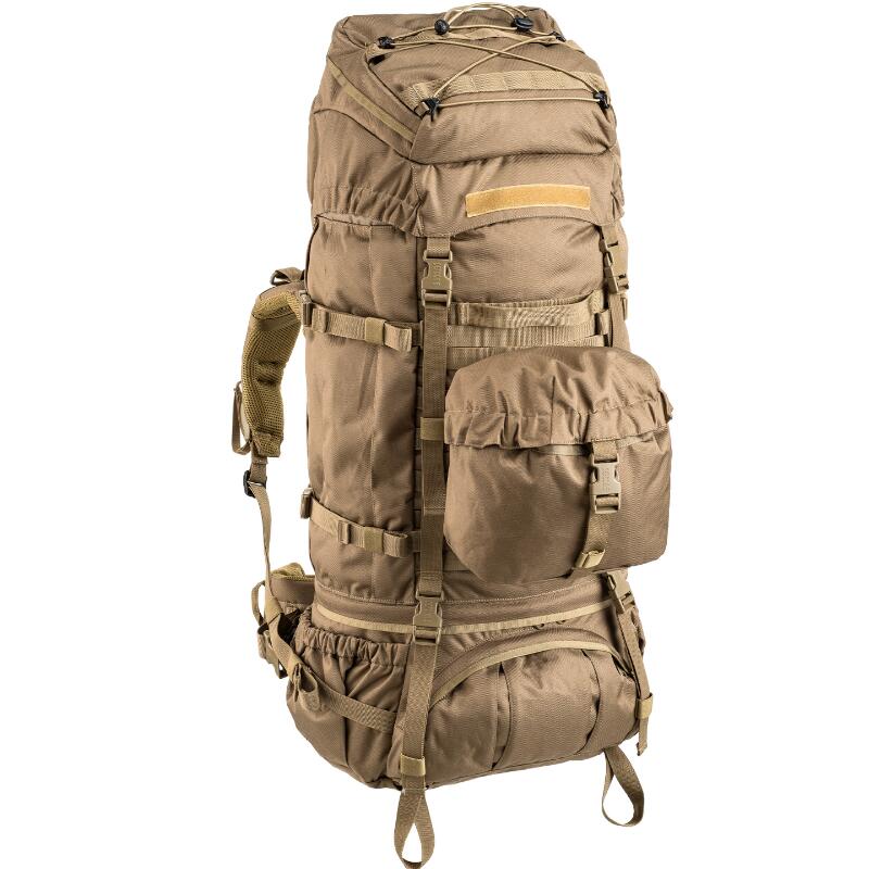 A large backpack with a capacity of no less than 100 liters. A large main compartment and two 7-liter pockets provide extensive organization within the backpack.
