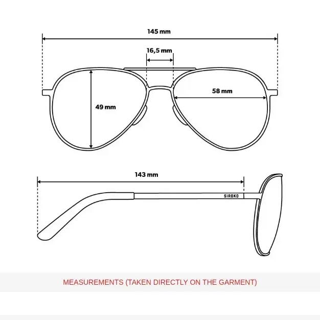 Siroko Monza aviator sunglasses with stainless steel frame, category 3 nylon lenses, and full UV400 protection Includes microfiber pouch