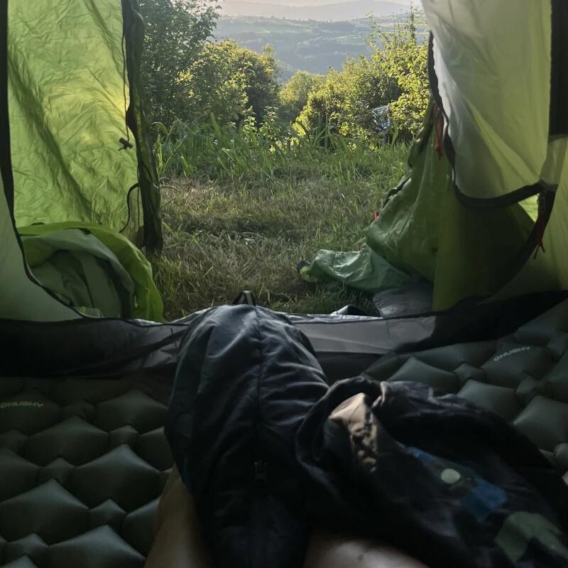 A lightweight inflatable sleeping mat for a comfortable night's sleep.